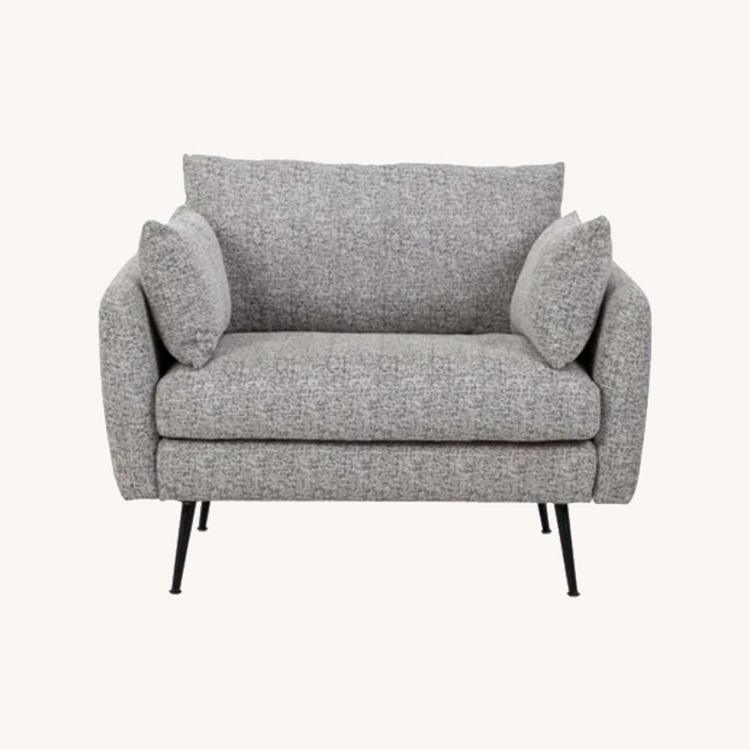 Seller's Notes:So many of our friends have complimented this chair! The light grey textured fabric blends beautifully with nearly any décor, and the sleek metal legs add a stylish touch. I’m moving soon, so I need to sell quickly—priced accordingly for a fast pickup before the end of the month.
