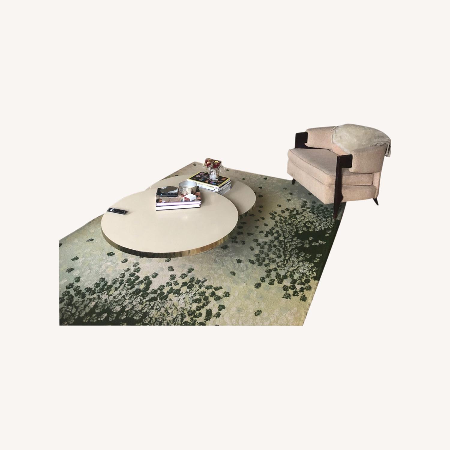 Seller's Notes:This is an all wool Terra rug with self fringe. Terra was originally designed by Van Day Truex for Brooke Astor. She had a pack of dogs and a miniature donkey that roamed the house so a rug that was forgiving was designed for her and her beloved pets. Thick and plush hand tufted rug measuring 74" x 111", made of 100% virgin wool face. Very minor soil spots, overall very nice, can be cleaned. Has been rolled up in storage for many years.