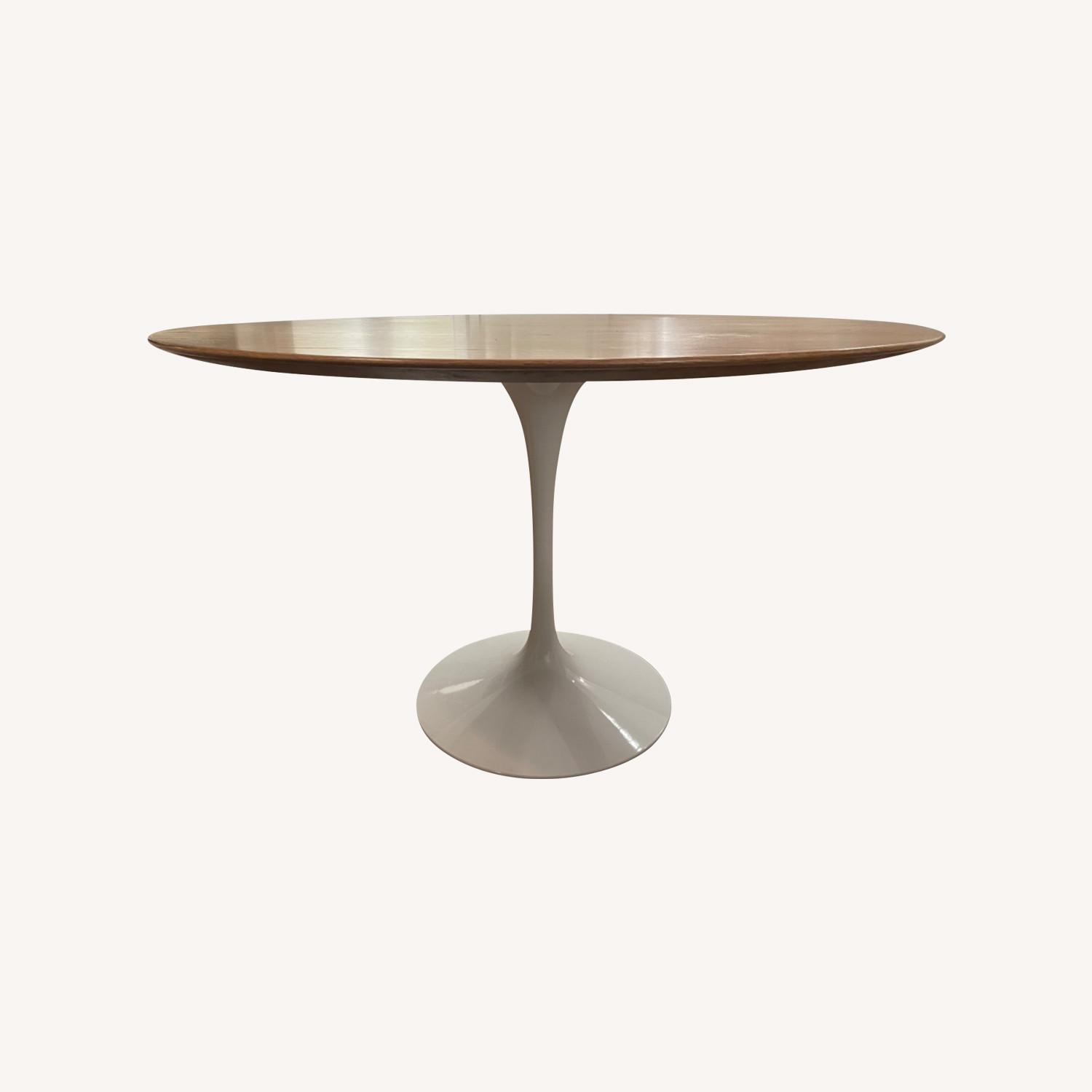 Seller's Notes:Simplicity underscored Eero Saarinen’s groundbreaking 1958 Pedestal Collection, designed as a solution to what Saarinen called the “ugly, confusing, unrestful world” created by typical table and chair legs. Inspired by a drop of high-viscosity liquid, the Saarinen Table swaps four traditional legs for a single sculptural base that eliminates visual clutter and allows for more legroom. Made for the modern home, the classic Tulip Table is graceful, elegant, and timeless. GREAT CONDITION. WE SIMPLY DECIDED TO REMODEL.