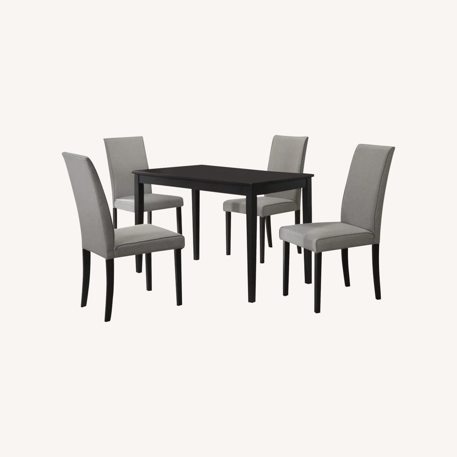 Seller's Notes:Anchor your dining space in a clean, transitional style with this five-piece solid wood dining set. Crafted of rubberwood in a gloss black finish, the table strikes a rectangular silhouette on four tapered square legs.