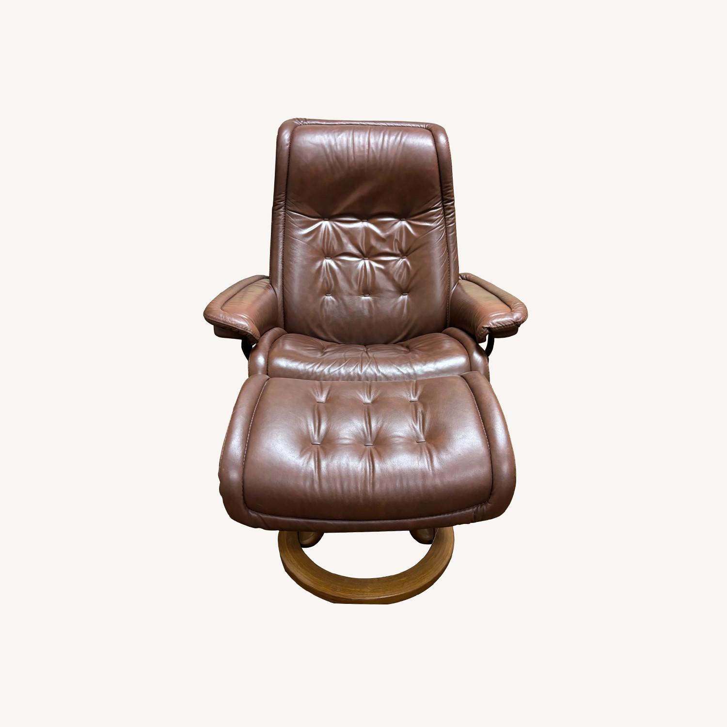 Seller's Notes:Stressless Ekornes chair (with ottoman listed separately). In chocolate brown, and ergonomically designed by a Norwegian chiropractor