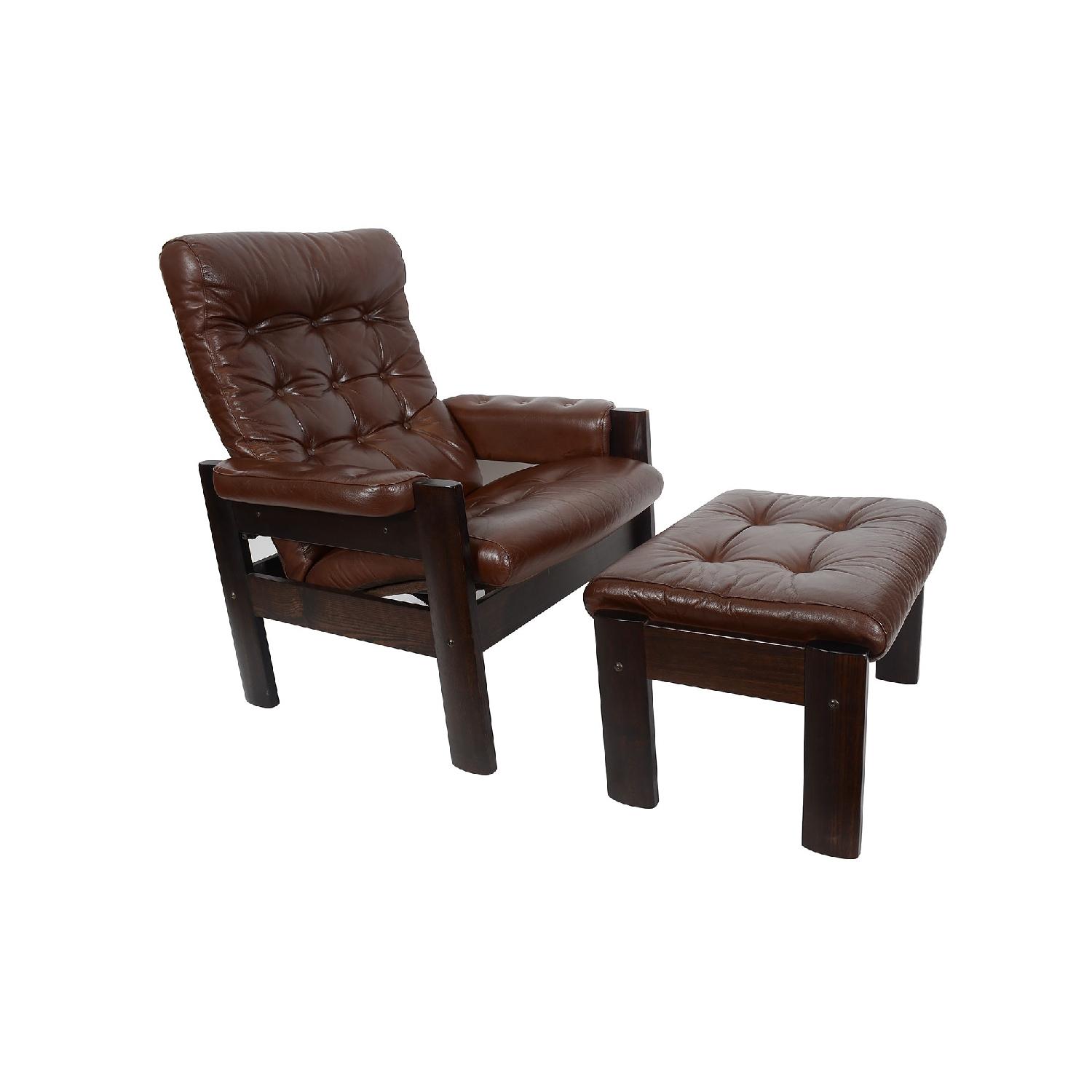 Ekornes Danish Modern Leather Stressless Amigo Reclining Chair & Ottoman