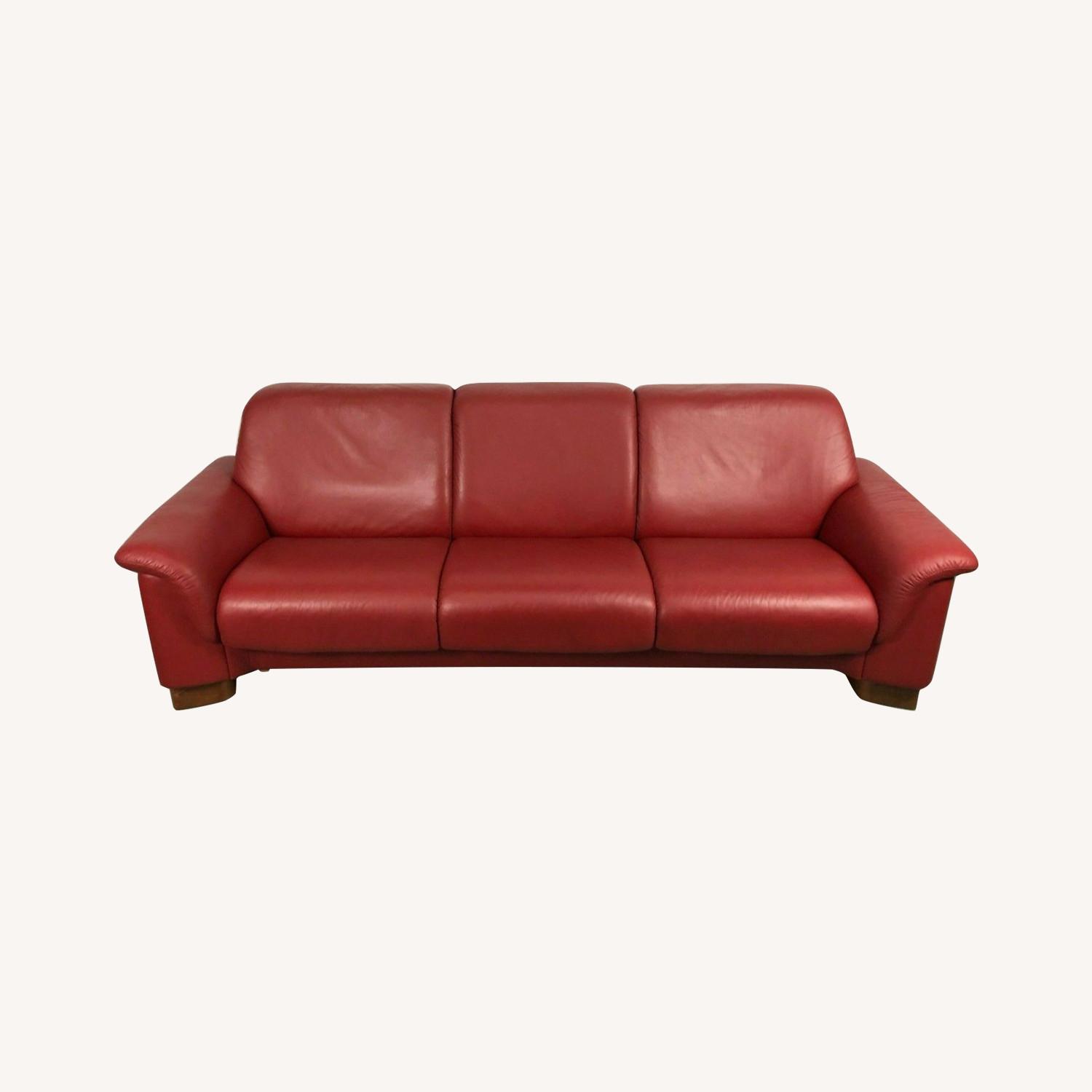 Seller's Notes:This is a gorgeous Ekornes Stressless reclining sofa. It has a "cherry" colored Paloma leather on "brown" wood feet. As with all Ekornes Stressless items, it is incredibly comfortable. Each seat reclines individually. It is in excellent condition with almost no wear.