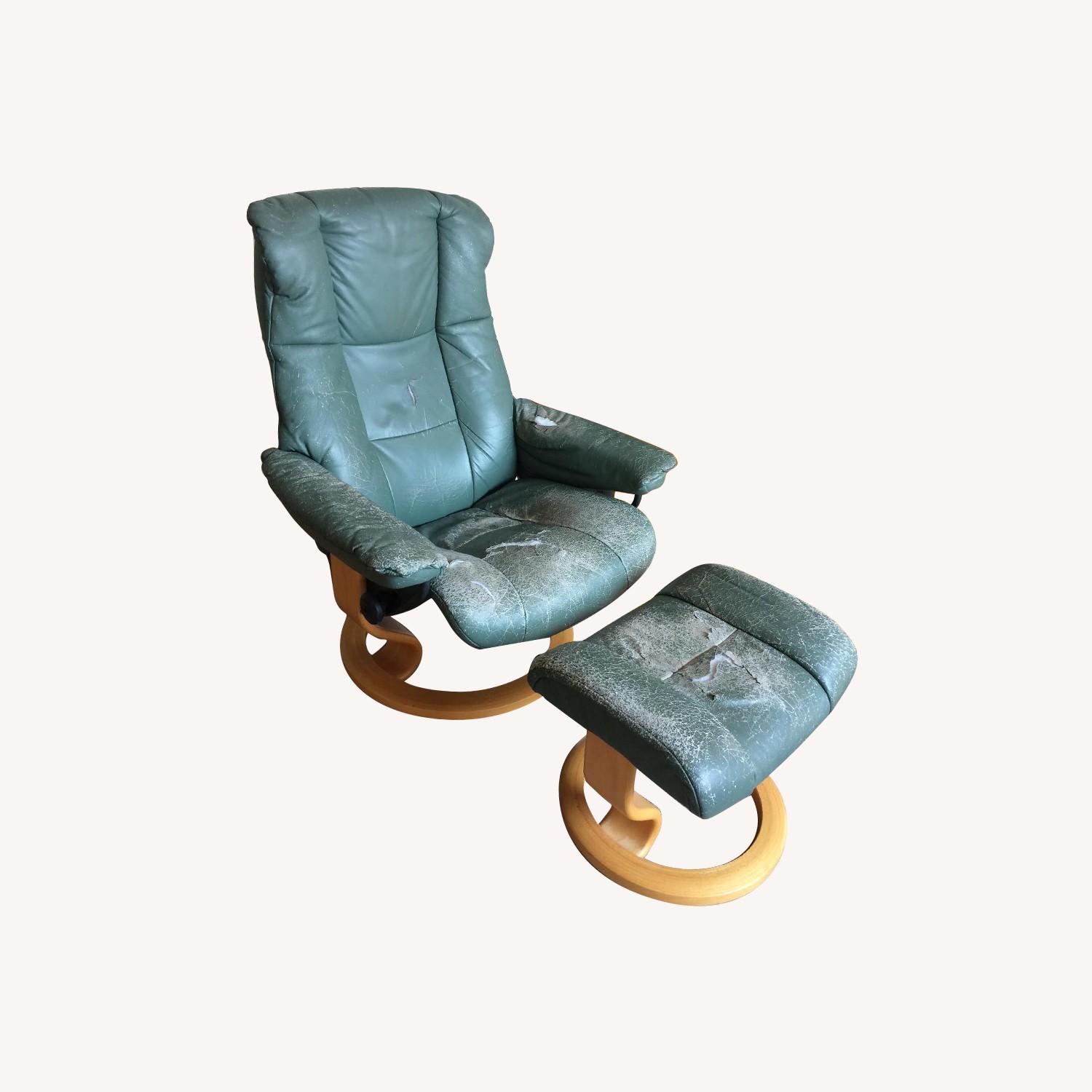 Seller's Notes:Stressless recliner and ottoman. Leather is completely shot but could be reupholstered. Structurally sound.