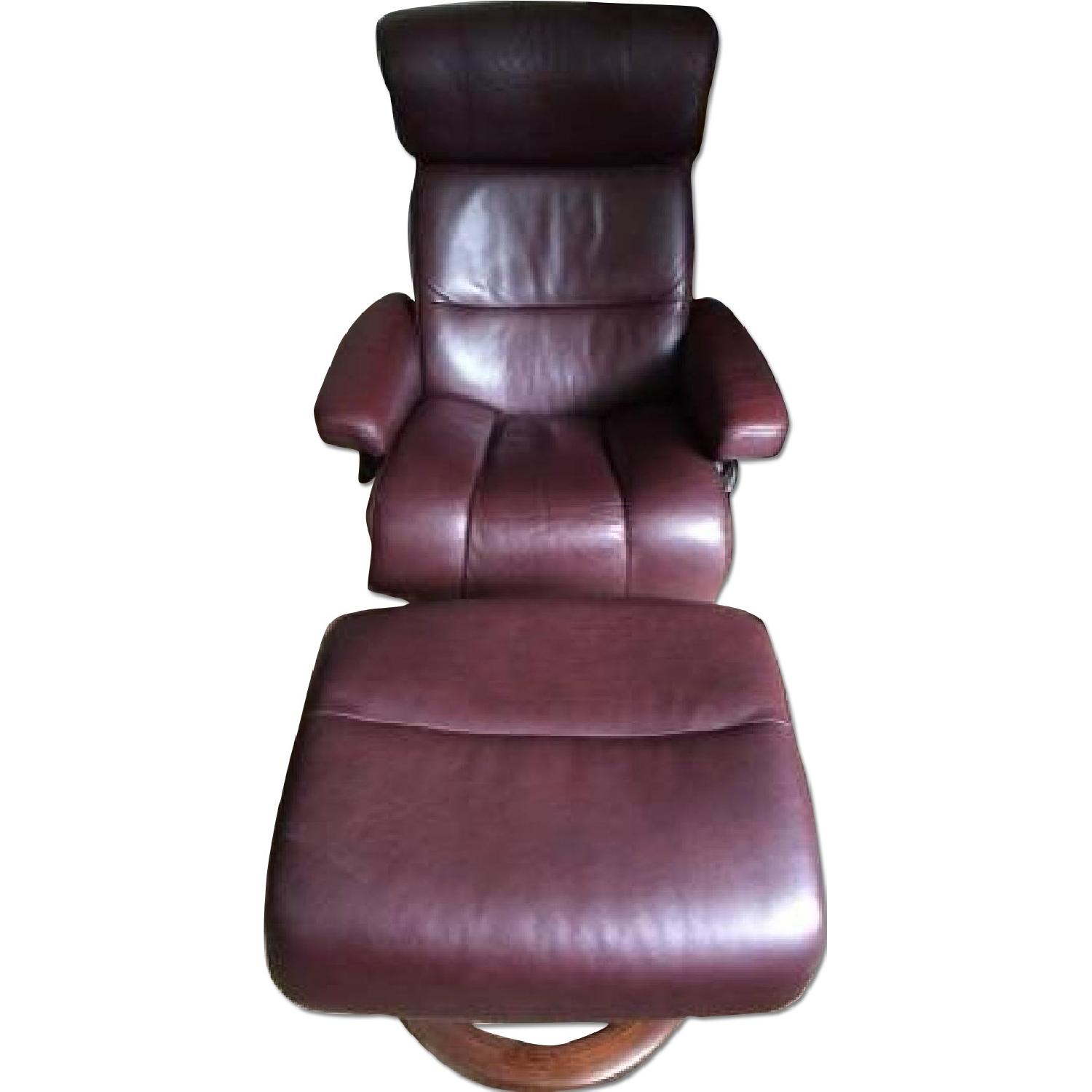 Seller's Notes:Ekornes Stressless recliner and ottoman in brown "Paloma" leather. In very good condition.