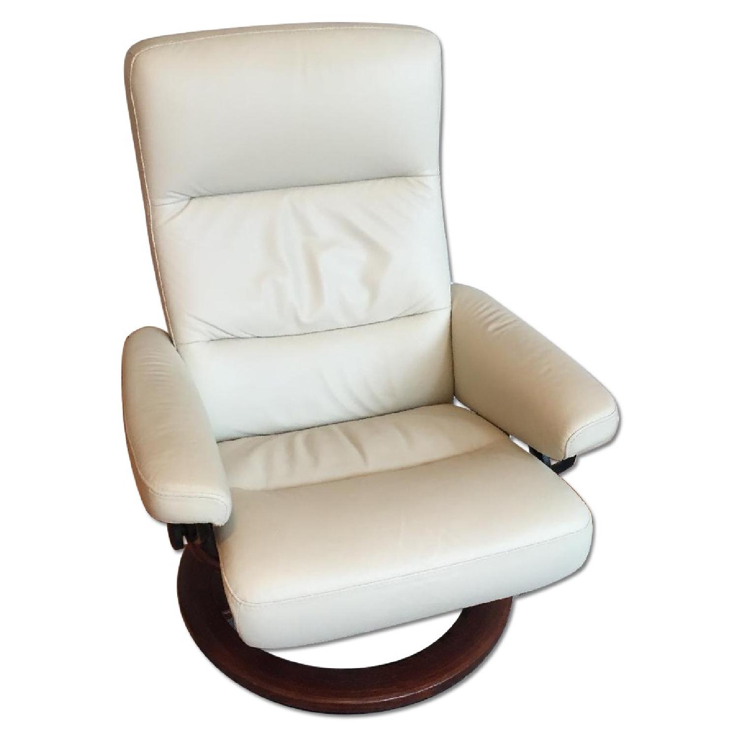 Seller's Notes:I recently relocated and need to sell. This is a great, comfortable recliner and ottoman--color is more of a cream/off-white. The measurements are rough--it's a little hard to measure exactly.