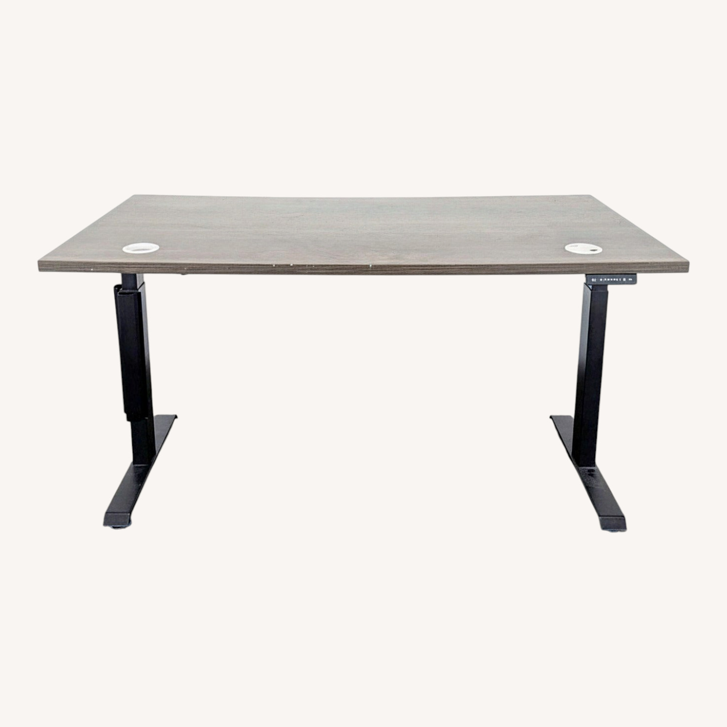Seller's Notes:This electric adjustable standing desk features a spacious wood-look top and sturdy black metal frame. It includes two cable management grommets and an under-desk cable tray to keep your workspace tidy. Ideal for home or office use, the desk easily adjusts in height for sitting or standing work.