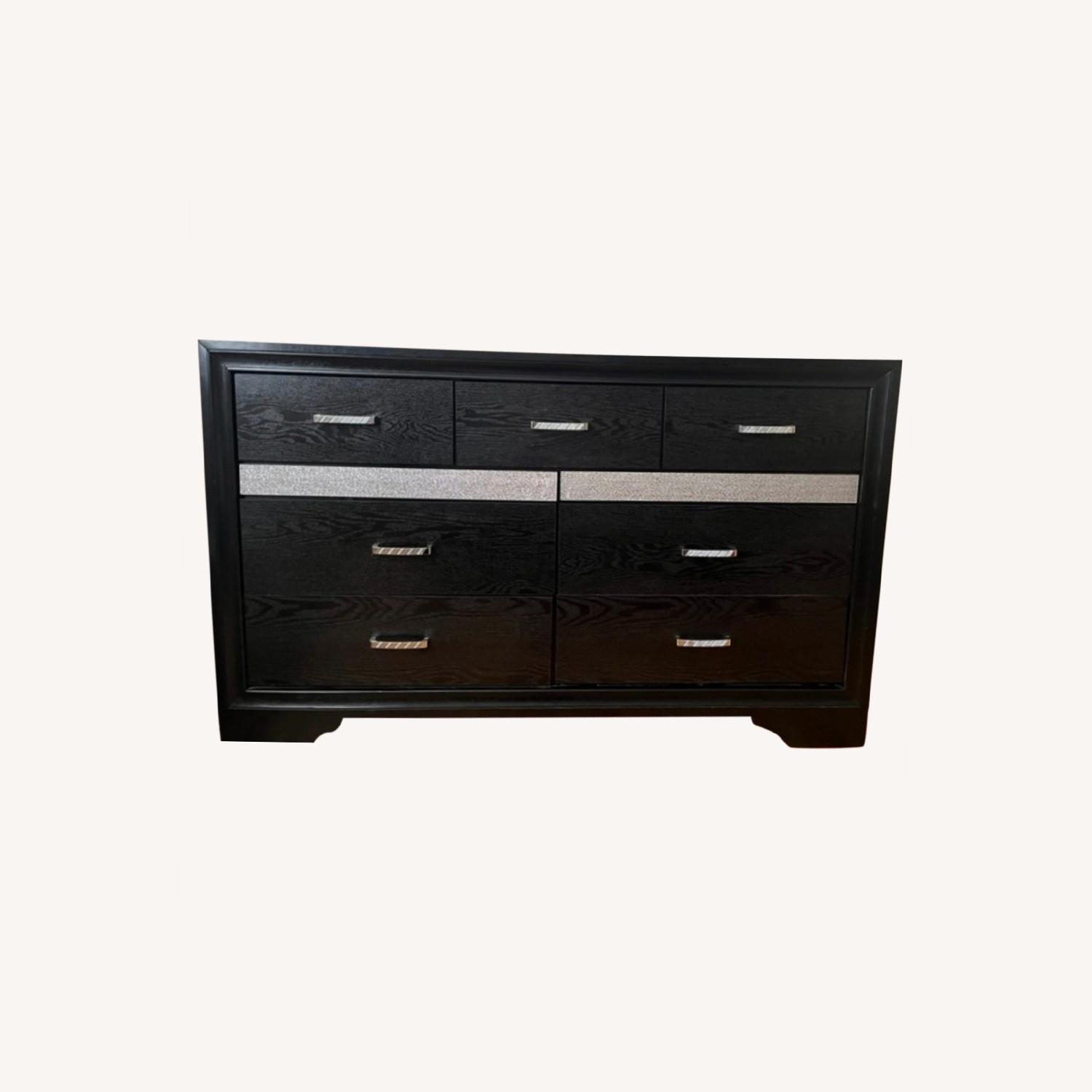 Seller's Notes:Black Finish glittering stripes, elegant and timeless design. English Dovetail front and back drawer construction. Kenlin center drawer glides, rhinestone pull handles hardware, hidden felt-lined drawers and jewelry tray. Small Mirror as complementary for free.