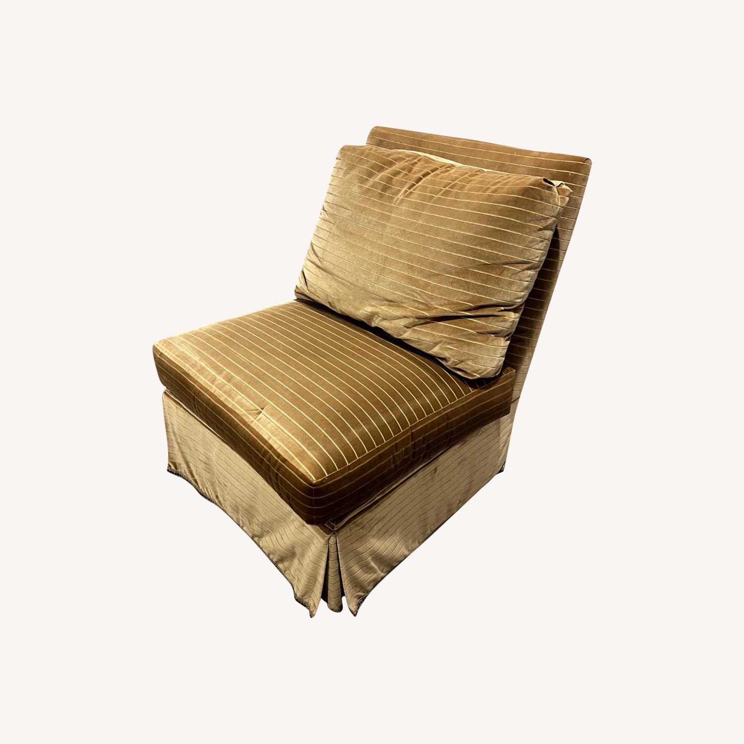 Seller's Notes:Add a touch of luxury to your living space with this custom-made armless slipper chair. Cloaked in sumptuous velvet and gracefully skirted, this chair is not just a seating solution but a statement piece. Handcrafted with meticulous attention to detail, it promises unparalleled comfort and aesthetic appeal. Its pristine condition ensures it looks as fresh as the day it was made. A beautiful addition to any room, this chair promises to be a focal point of admiration.
