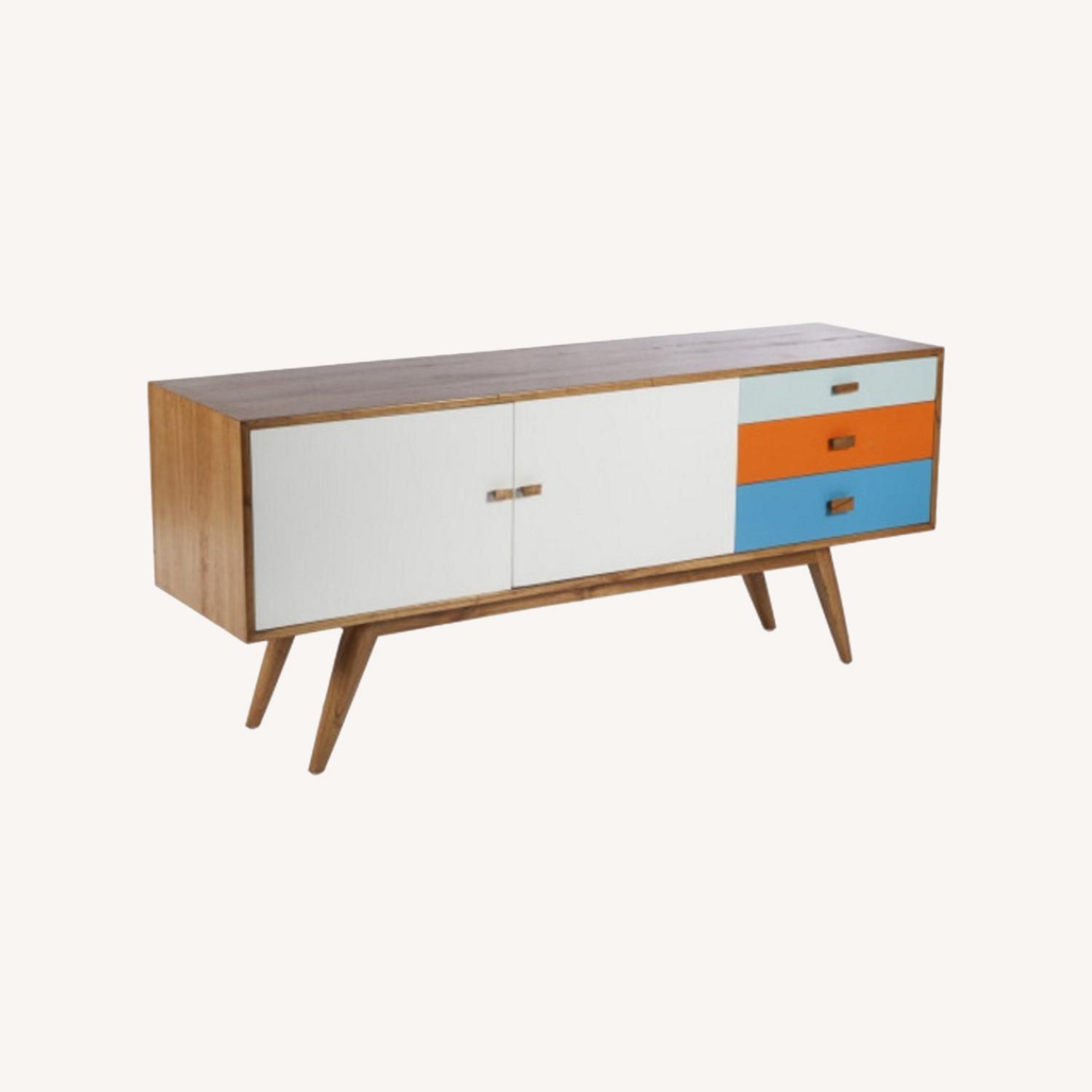 Seller's Notes:Elemental Sideboard is a beautiful sideboard, inspired by Danish mid-century contemporary designs and built of a good mindi wood. Thanks to its gorgeous look and vivid colours of the doors and doors, this sideboard will add a chic look to any home.