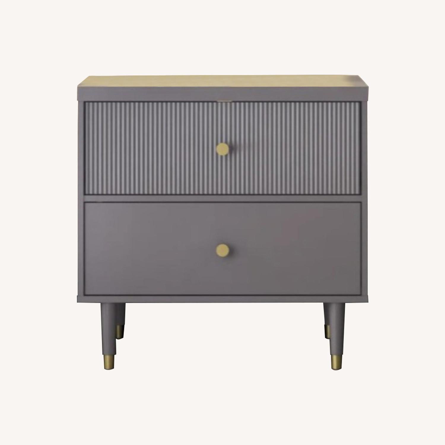 Constructed from durable painted MDF & featuring midcentury modern contours and textured ribbed drawer fronts with gold accents; Two roomy drawers with sturdy metal slides