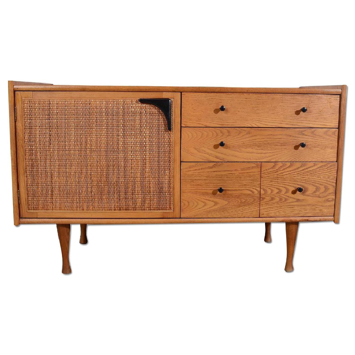 Seller's Notes:Elm Server or Credenza Solid wood. Condition-Good Vintage Condition. Restored top surface. Structurally Sound. Please look at the images for condition. I have the matching chairs and table. Measures- 48"w x 30"h x 18"d