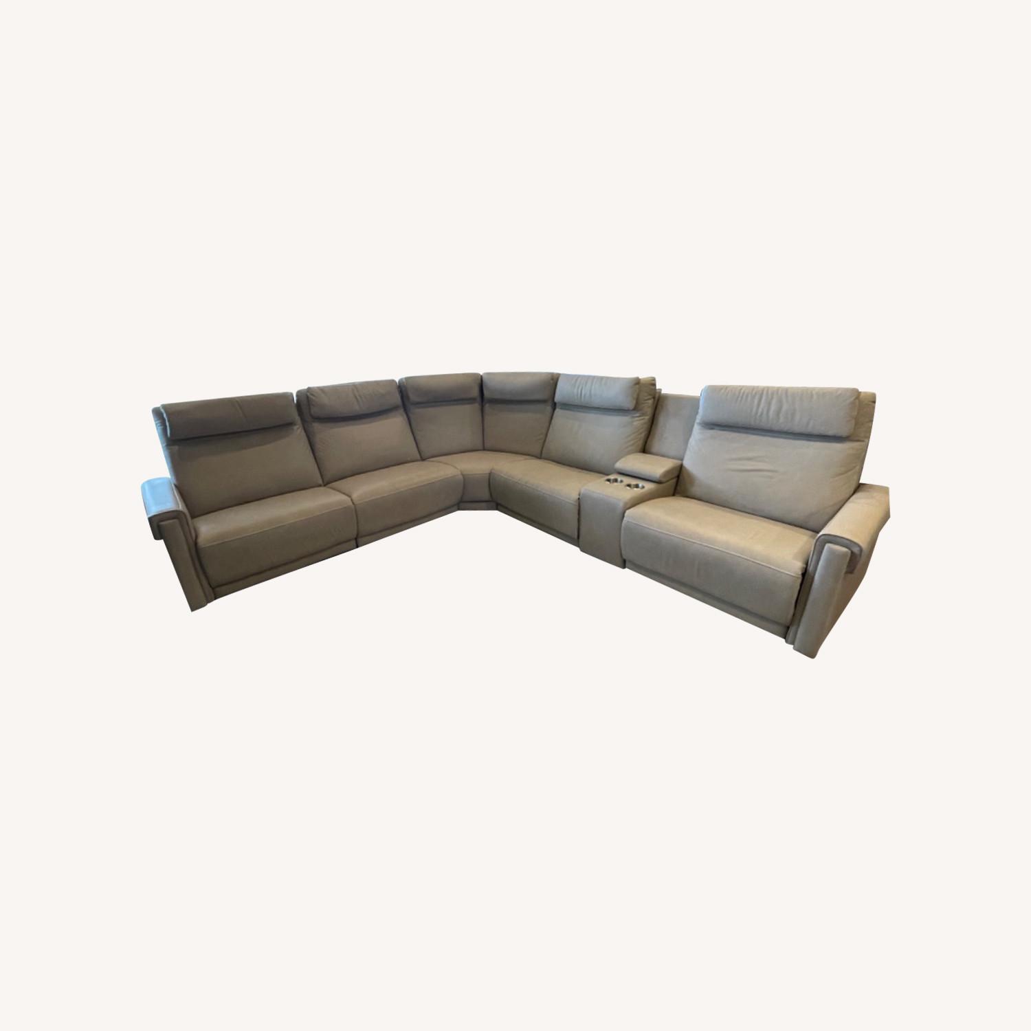 Seller's Notes:Elran brand custom leather sectional with 3 power recliners. It is only 1 year old and like new. We have no kids or animals. The side with the 2 recliners is 84”. The other side including the corner is 105”. Color is light tan.
