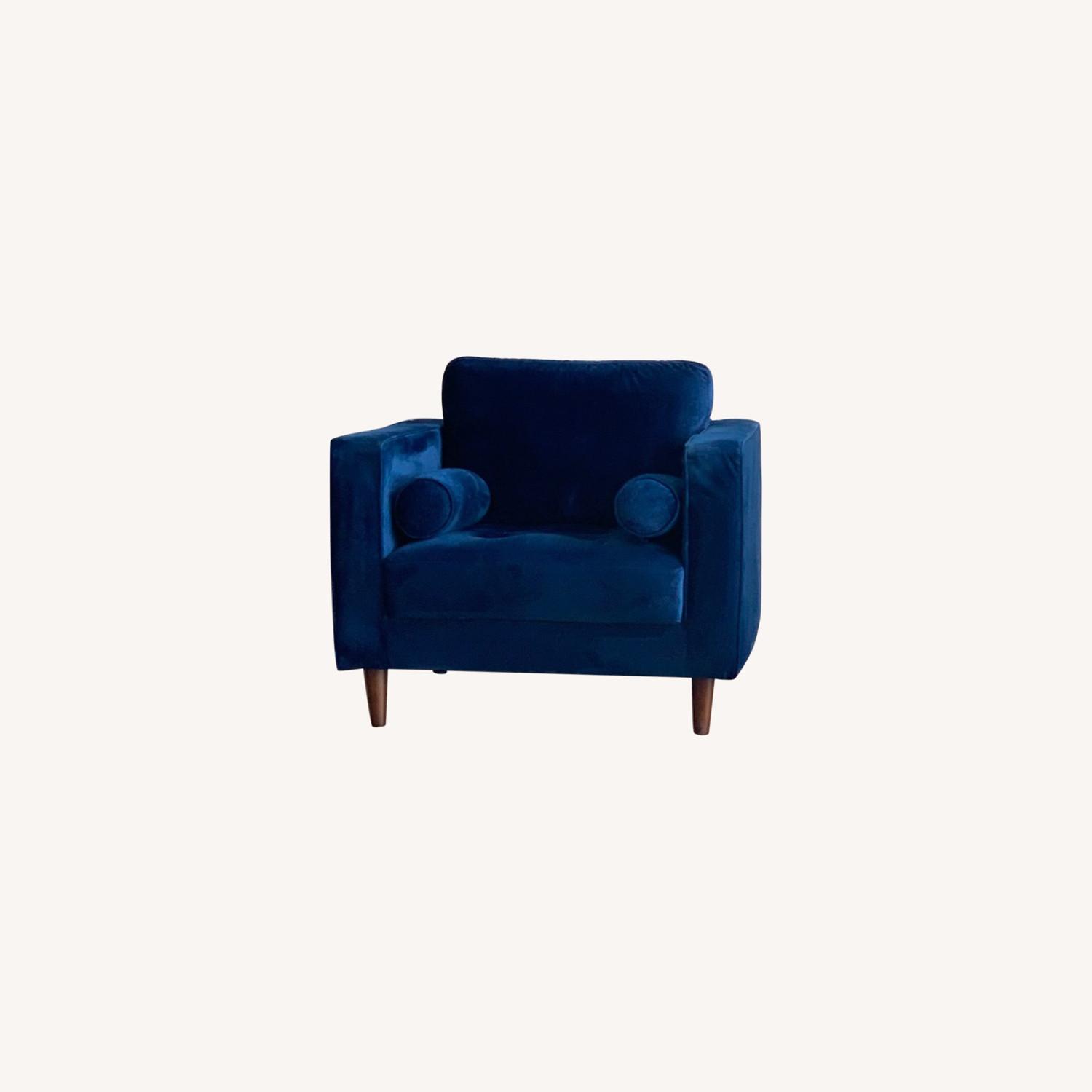 Seller's Notes:beautiful dark blue velvet side chair in good condition. original purchase $750 from Modani furniture. In process of downsizing and relocating.