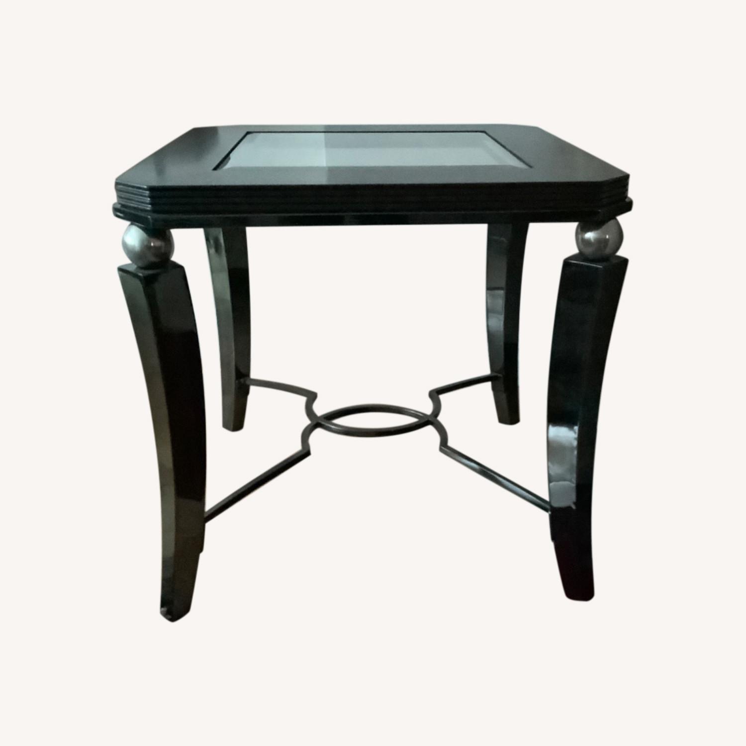 Seller's Notes:Glass and wood end table with metal legs