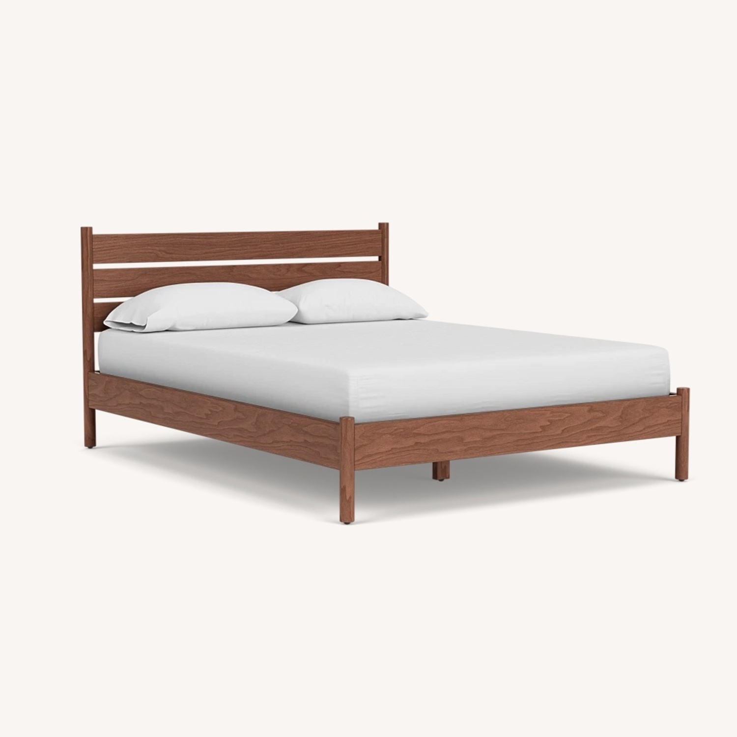 Seller's Notes:Gently used walnut queen bed with beautiful headboard. The bed does not require a box spring and includes wooden slats. The bed is in great condition, we are only parting with it to make room for our nursery! Minor scuffs on the legs here and there.