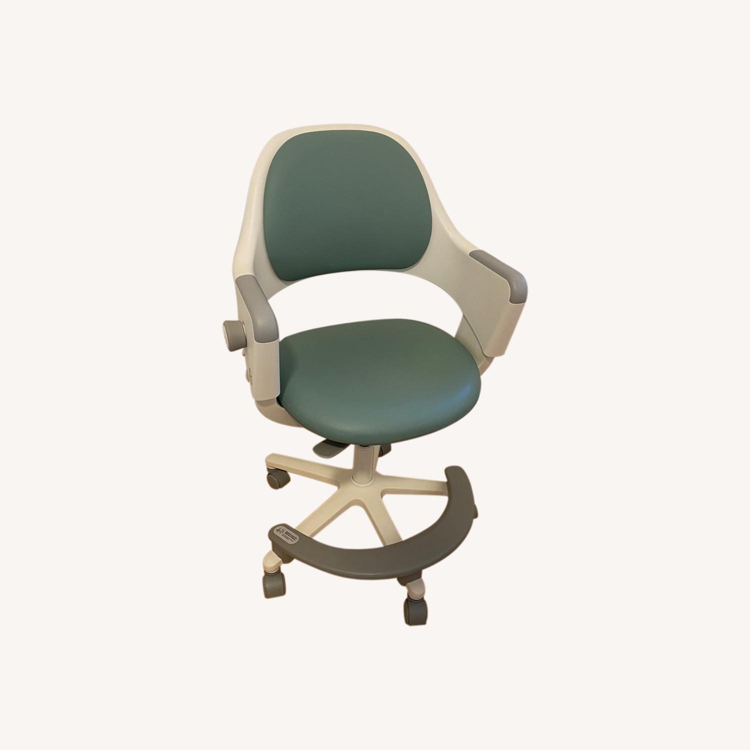 Seller's Notes:This is a SIDIZ Ringo Kids' Office Chair. Frame is steel and plastic, cushioning is mint green faux leather. Purchased brand-new on Amazon just three months ago (mid-July 2022) for $290. Has no blemishes! We're selling because we were gifted a different chair that we prefer. The height is easily adjustable with a single touch lever. The back depth is adjustable to 4 different levels using a diagonal mechanism - as the back moves back, the back height also goes up slightly. (See two Side photos showing the lowest vs highest setting). The wheels are smooth and glide very easily.