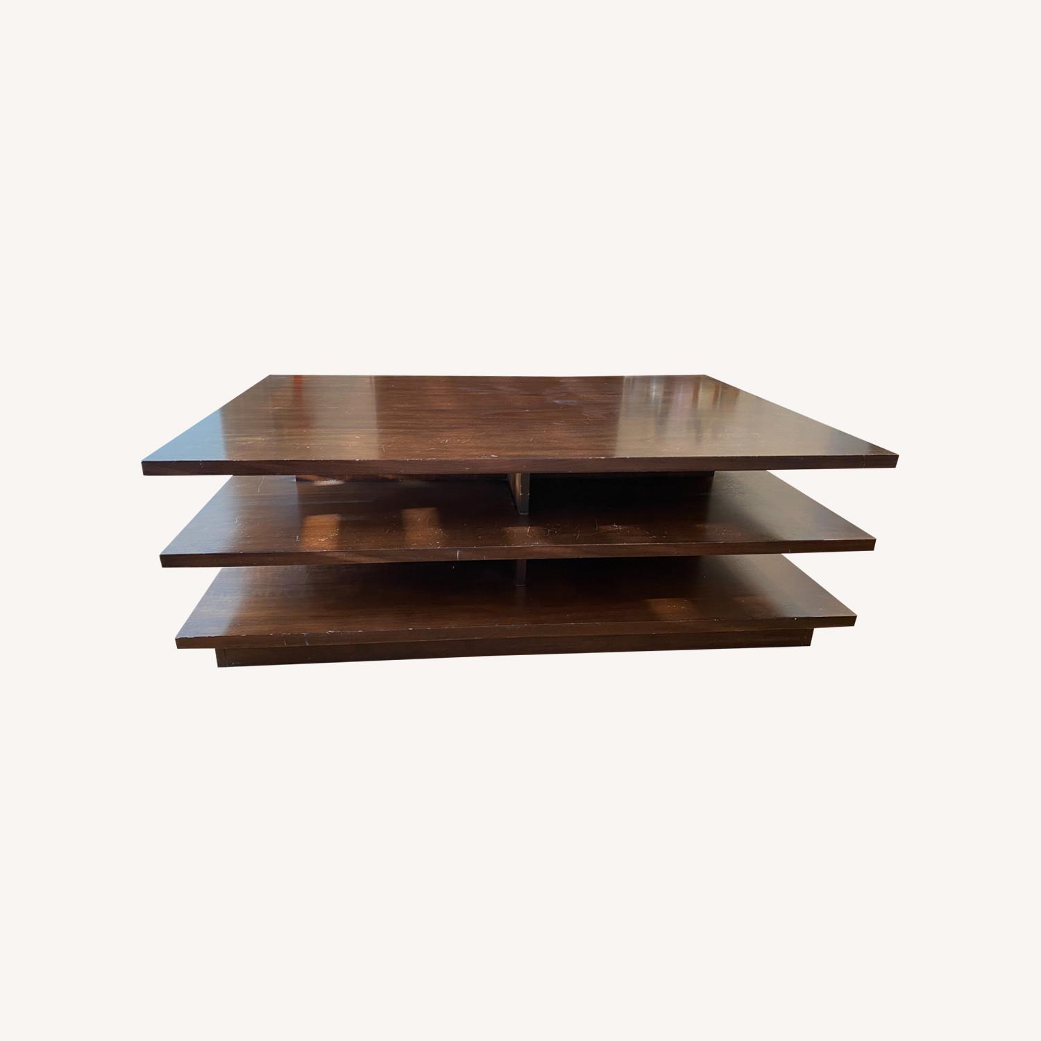 Seller's Notes:Espresso Coffee Table Crate and Barrel - Simply Modern by Blake Tovin with INCREDIBLE STORAGE. Has two drawers with handles and three layers for displaying and storing items inside. Drawer handles are currently screwed inside drawers for safety during delivery. Rolls on wheels for easy transport and movement. Has some scratches (shown) and chips (shown). Can easily be refinished or buffed out. High quality wood, sturdy and solid. Kept in a smoke-free, pet-free and kid-free house. This is perfect for a college, graduate student starting out or a young professional. This is an incredible deal on this high quality piece of furniture. I LOVE this coffee table and am only selling it because I am moving to a smaller apartment. Make a reasonable offer and I will most likely accept.