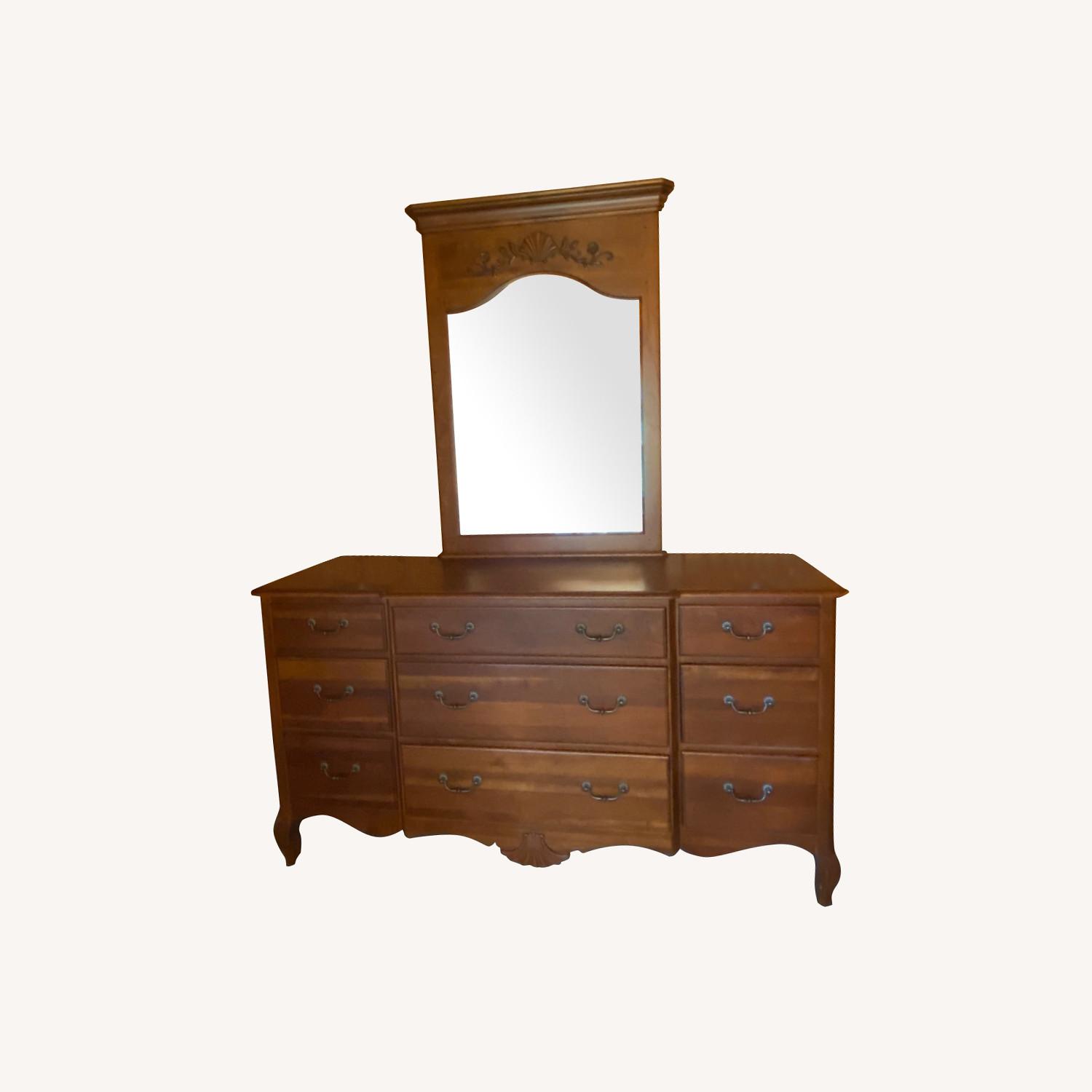 Seller's Notes:Ethan Allen Chloe’ - English Toffee, Warm medium brown stain with dark glaze, antiqued. 64” w x 19” d x 78” h