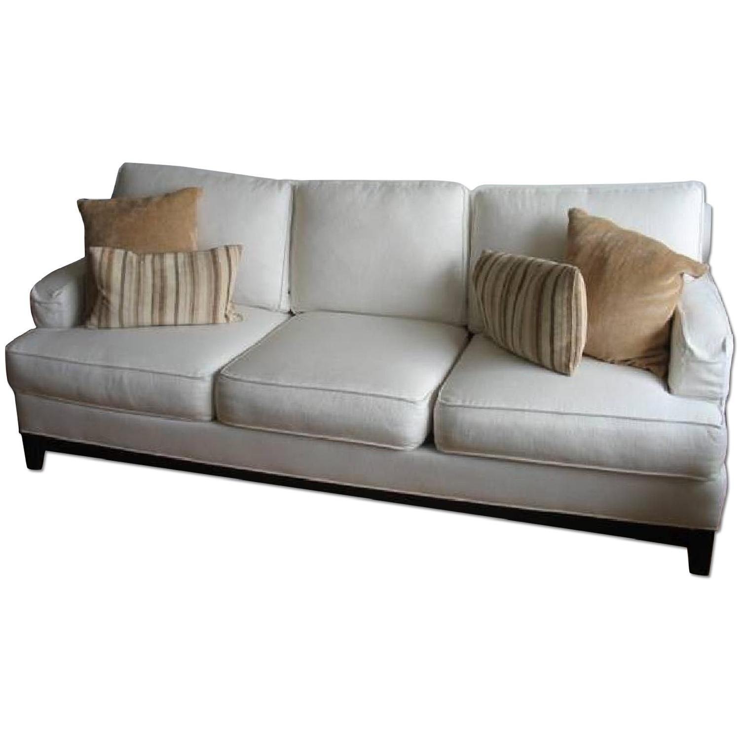 Seller's Notes:We are selling our Ethan Allen "Arcata" Three-cushion sofa (originally + $2,000) Seating Area : 74" wide x 23" deep Seat Back: 15" high Seat Height (floor to top of cushion): 21" high Arm Height: 24" high