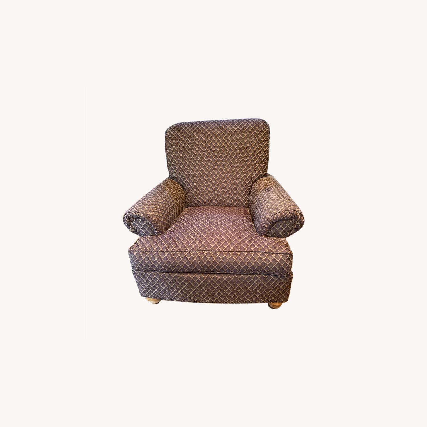 Seller's Notes:This Club Chair or Arm Chair bought in Ethan Allen is very comfortable!! Many hours were spent watching TV, reading or sleeping in this chair. The fabric on the left arm is slightly frayed.