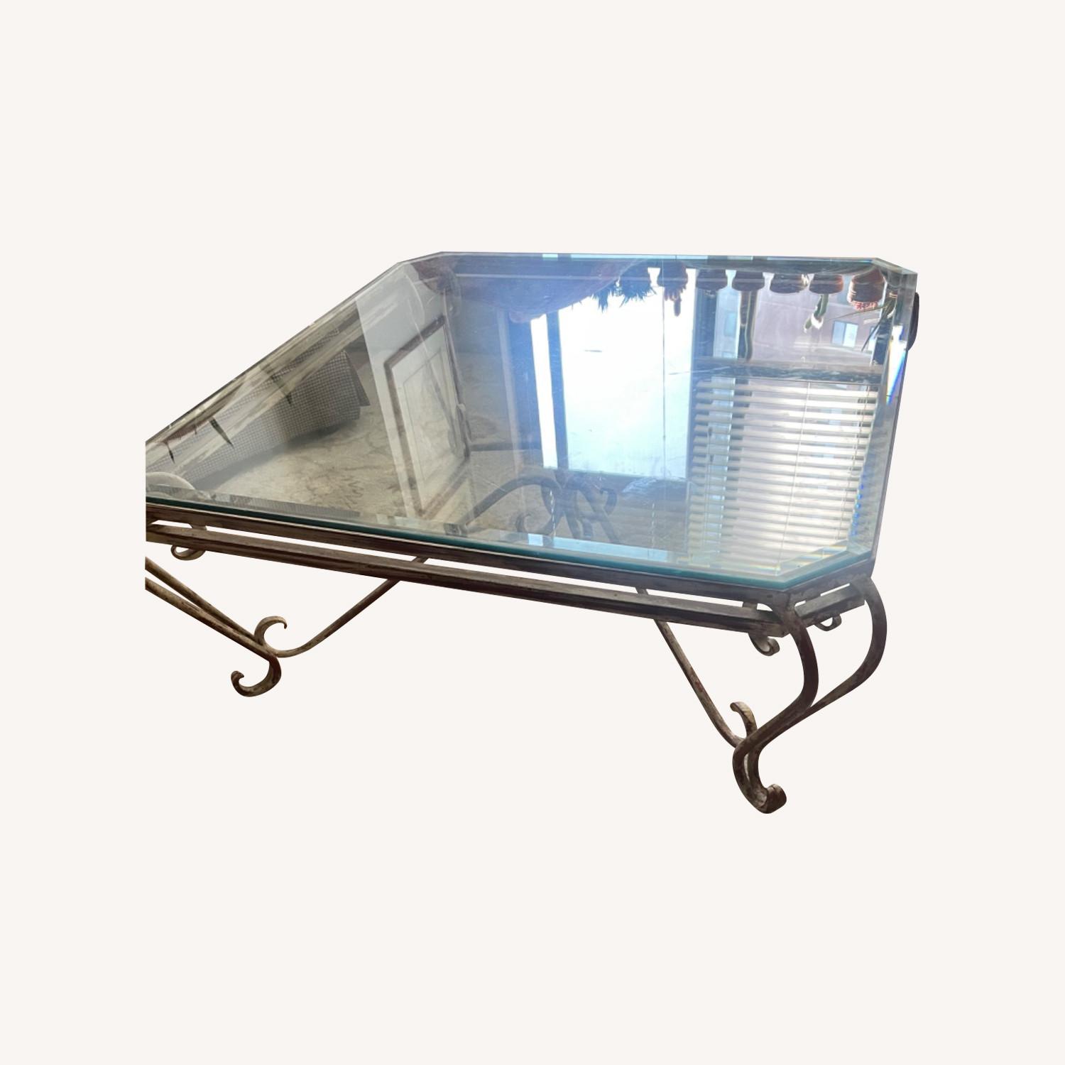 Seller's Notes:Coffee table perfect for couch or sectional beveled glass top wrought iron base