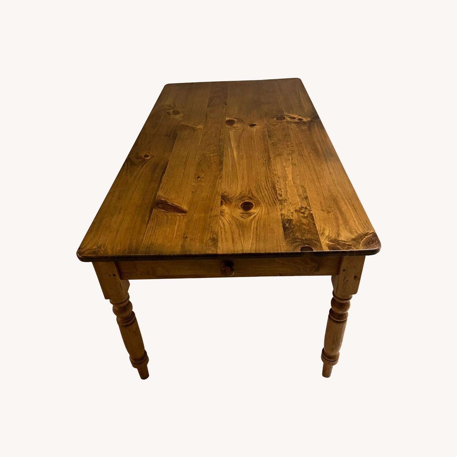 Seller's Notes:Nothing says quality like Ethan Allen! Rustic elegance in your kitchen. Seats six. The drawer at the end of the table is perfect for light storage like placemats or silverware. I wish I could keep it but I'm moving and it simply won't fit in my new space.