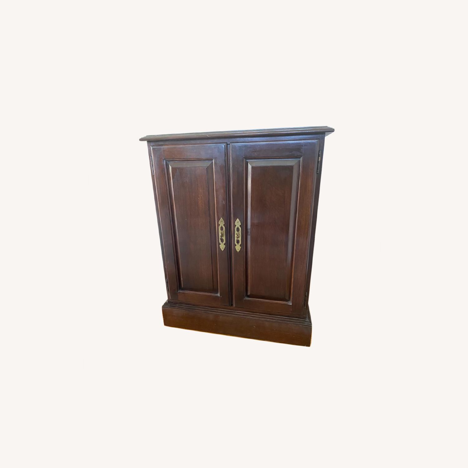 Seller's Notes:Ethan Allen storage cabinet in dark cherry is ideal for printer or other small electronics. There is a cutout for cord access and one adjustable shelve. Versatile cabinet for office supplies or any other type of storage. There are scratches on top and throughout, most on edges.