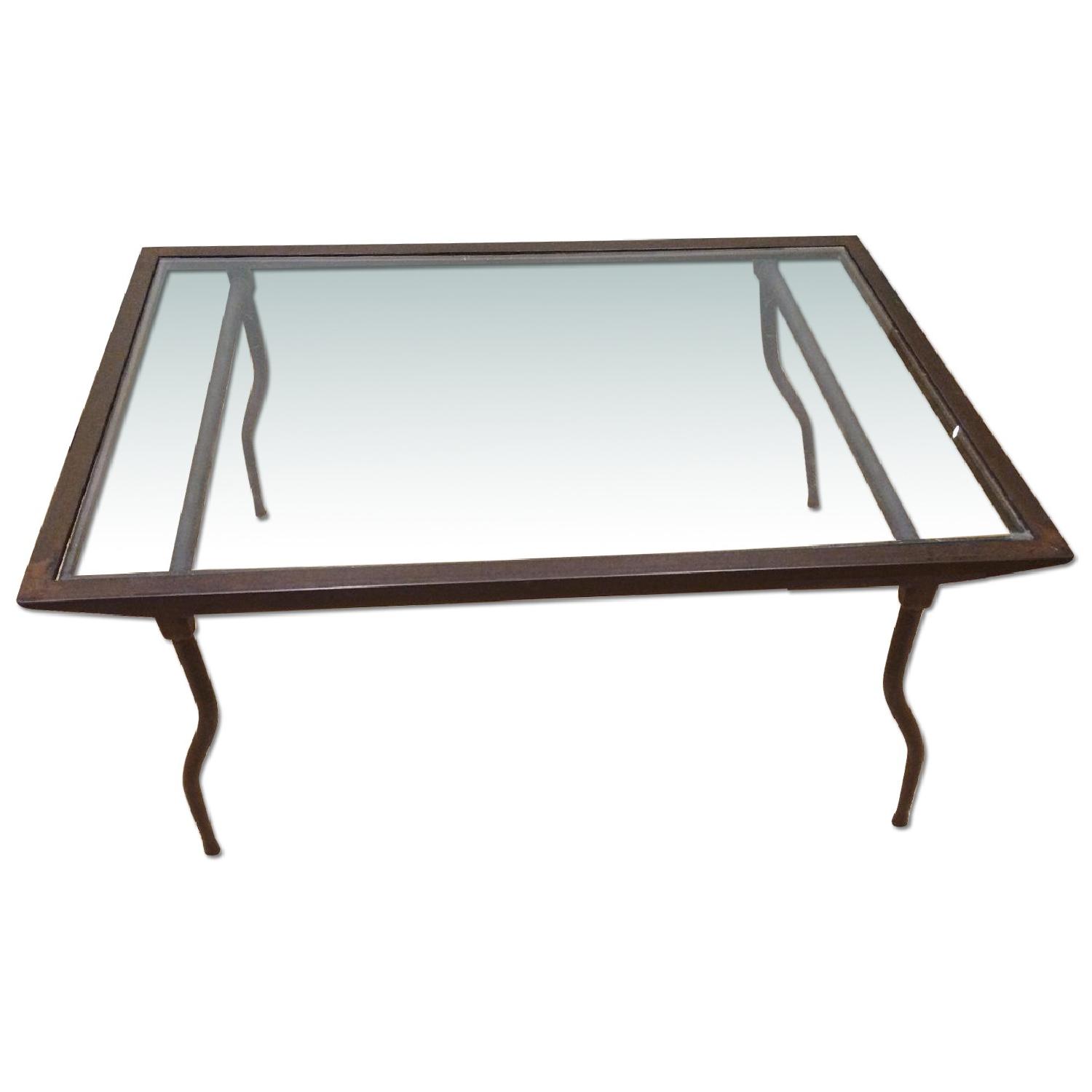 Seller's Notes:Table is perfect and not too large. Wish we can keep it but with kids a coffee table seems like a bad idea!!!! Ethan Allen glass top coffee table. Glass is extremely durable. Easy to clean. Actual table frame is made of iron and is a rusty brown color. Original price: $750 Item is in great condition besides a minor chip in the glass on the corner.