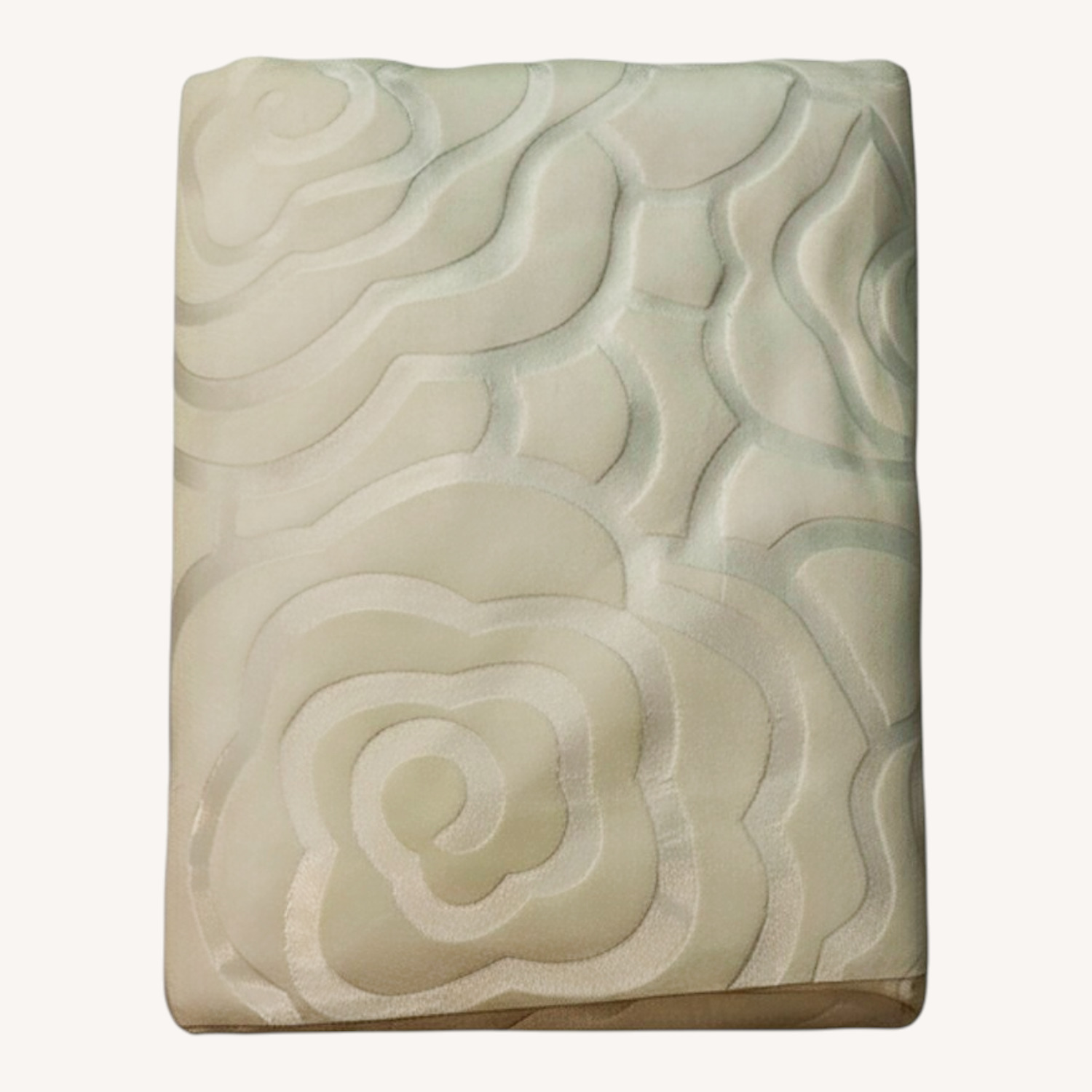 Seller's Notes:Elegant pair of custom Ethan Allen pinch-pleat drapery panels made from a luxurious linen and silk blend. The fabric features a soft ivory tone with a subtle damask pattern that adds texture while maintaining a neutral look that works well in many interiors. The tailored pinch-pleat design creates a structured, graceful drape that is ideal for living rooms, bedrooms, or formal dining spaces. The neutral color palette pairs easily with traditional, transitional, or contemporary décor. Originally installed in a Washington, DC condominium and professionally cleaned. The fabric remains in excellent condition with no stains, fading, or odors. Panels may be professionally shortened if desired. Best suited for windows approximately 36–48 inches wide, depending on desired fullness. Curtain rod available separately.