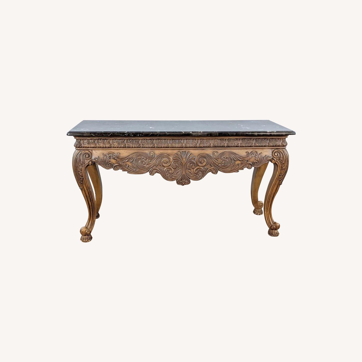 Ethan Allen Marble Top Wooden Console Table