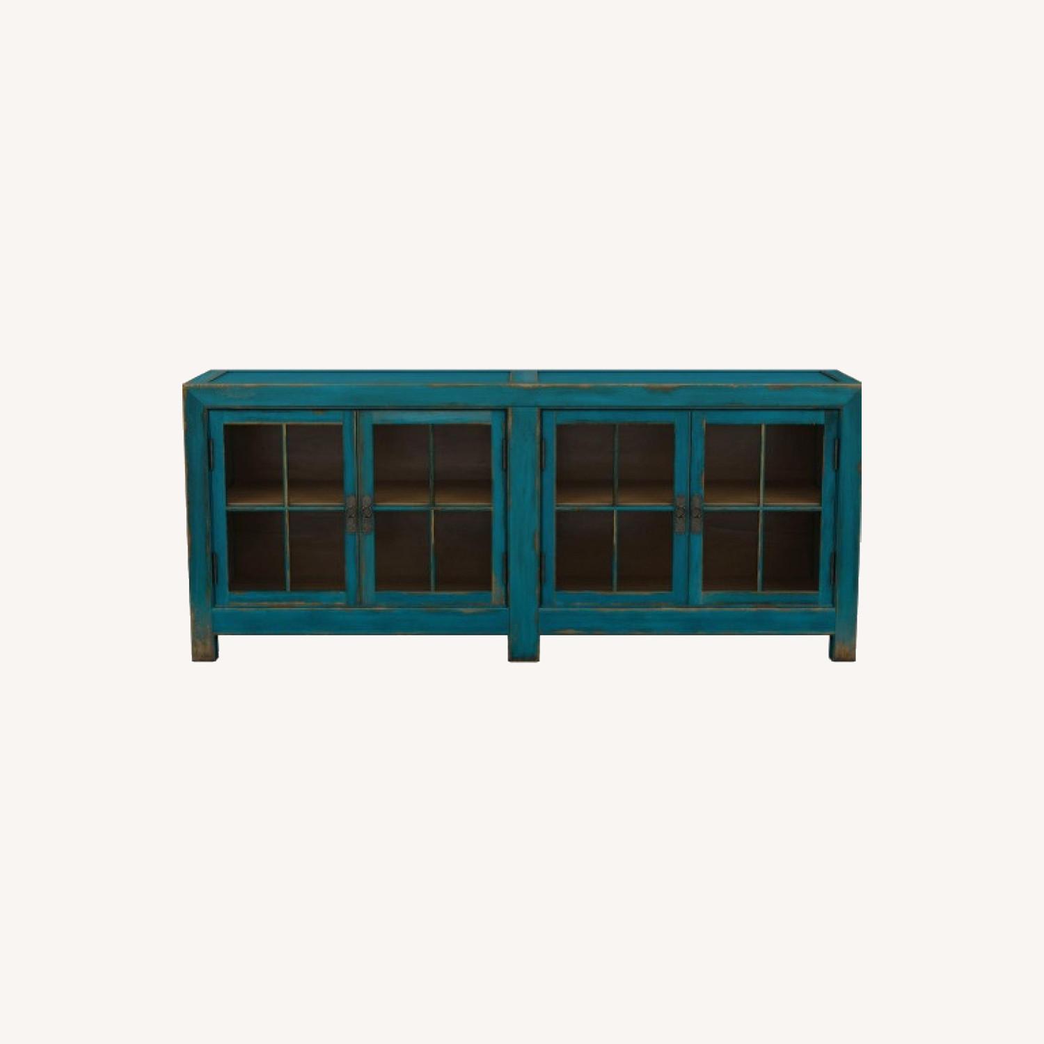 Seller's Notes:Lightly used Ming Media Cabinet in Aged Teal (has distressed look). Retails on Ethan Allen site for $2,740. Moving to a new home where the piece won't fit so that is why we are selling.