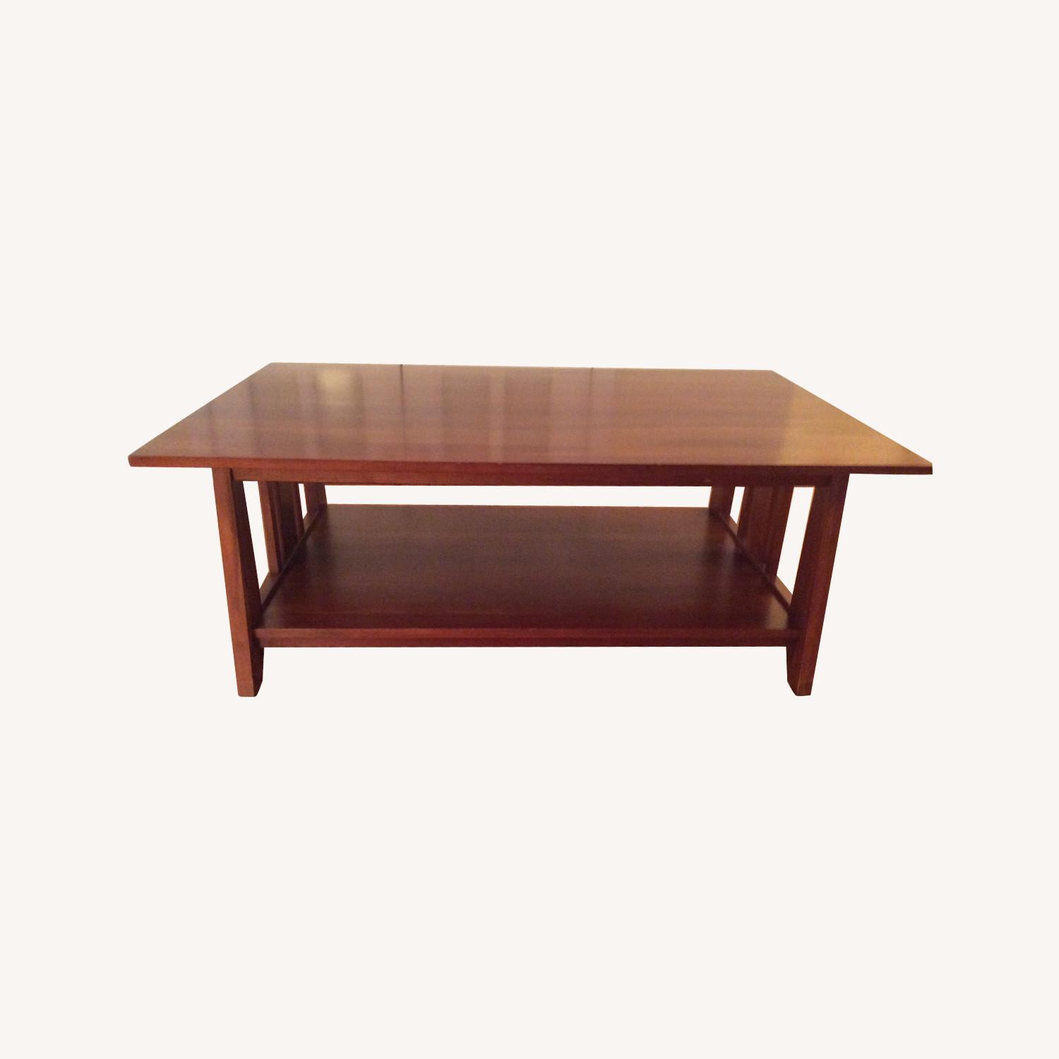 Seller's Notes:This Mission style solid cherry coffee table was purchased in 2006. It has a few scratches on the bottom of the legs but is otherwise in great condition. Very sturdy and roomy. Too big for my current space.