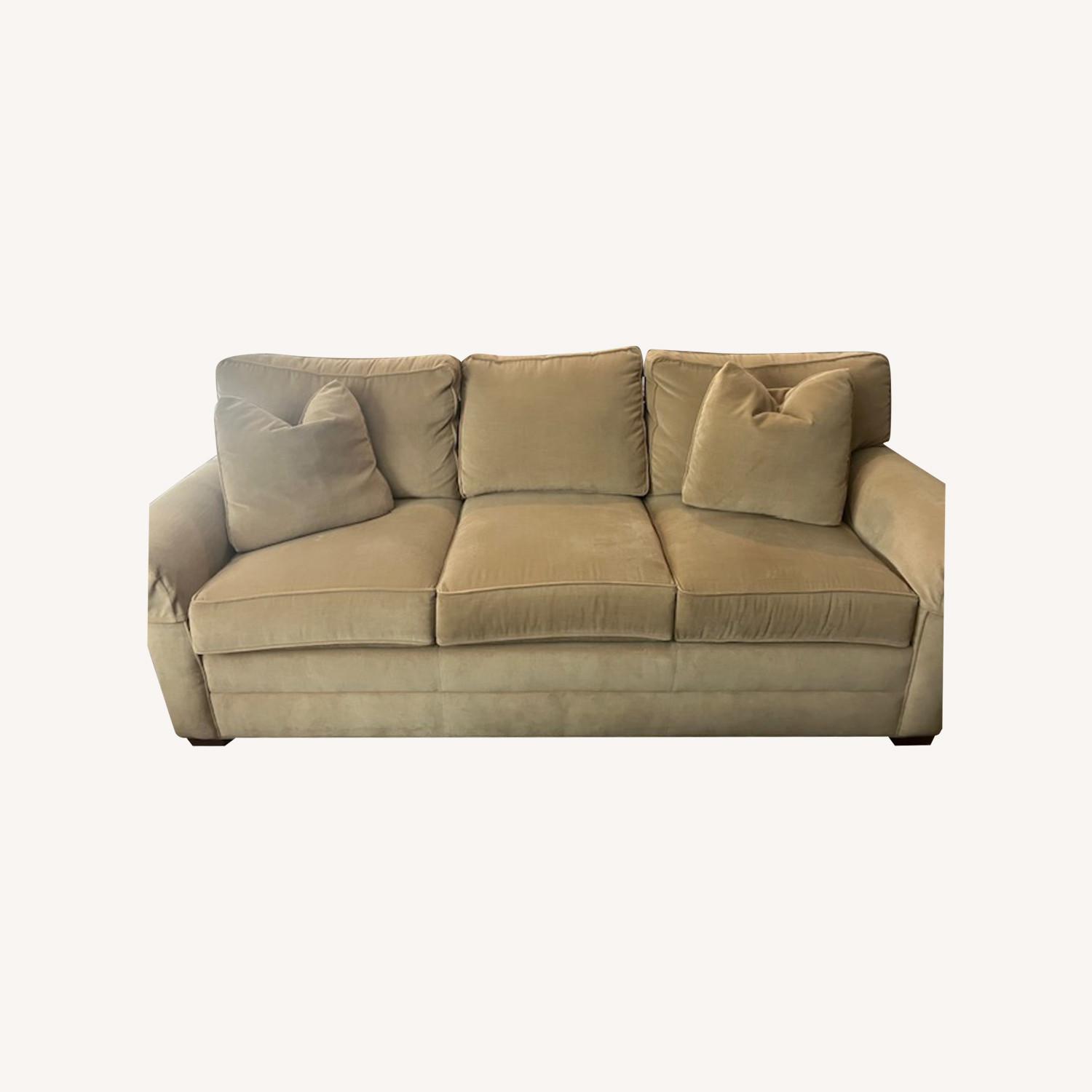 Seller's Notes:Ethan Allen Bennett Collection 3 seat sofa, well taken care of, in good condition. Back cushions 100% polyester fiber batting. Seat cushions 86% polyurethane foam pad, 15% polyester fiber batting. Bolster 95% water fowl feathers, 5% down feathers. I would love to keep it, but am moving to a smaller apartment and don't have room for it.