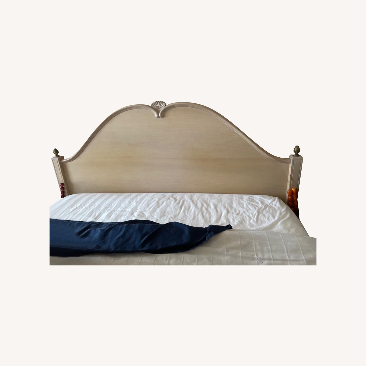 Seller's Notes:Ethan Allen queen size headboard in a creamy color in excellent condition with matching end tables containing 3 drawers are dove tail