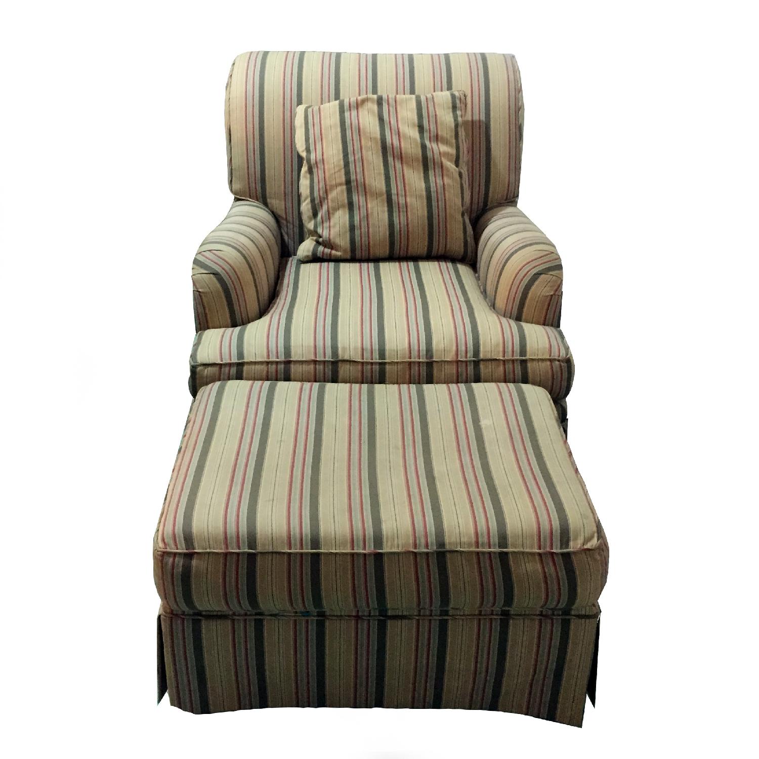 Seller's Notes:Roll Arm Chair from Ethan Allen Custom Upholster in Striped Fabric by Ralph Lauren Chair is 33''x37''x34.5in Ottoman is 28.5''x21''x15.5'' Chair fabric is in perfect condition. The ottoman has a small bleach stain and some other faint stains (see close up picture) Feel free to pick it up to save on delivery fees!