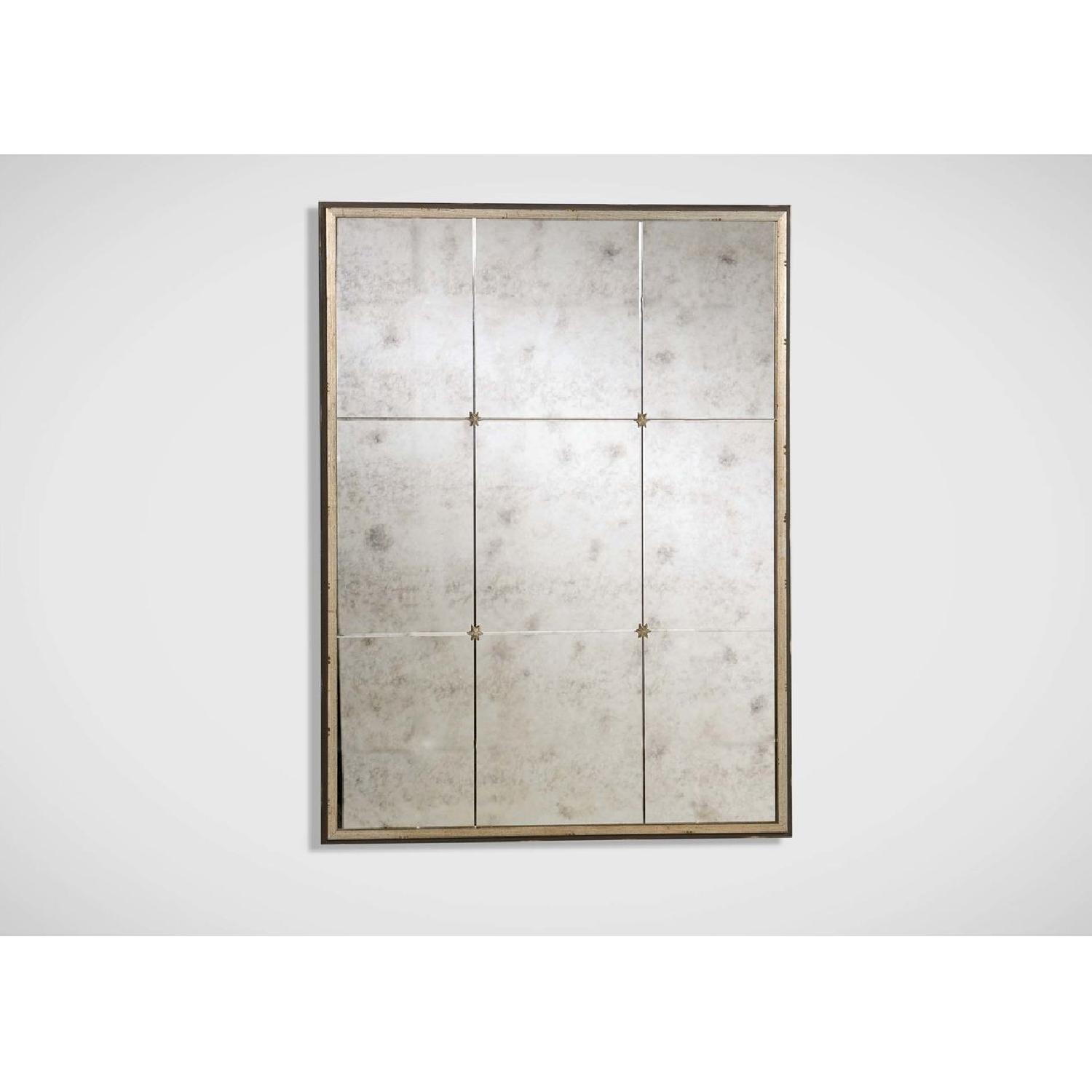 Seller's Notes:A blend of old and new. Nine mirrors are antiqued by hand, made to look old by way of an old-fashioned process. Then they’re framed in clean, contemporary, solid wood that’s finished in an aged silver patina. The delicate rosettes that give this mirror its name accent each corner of the center panel. With the handwork involved, every mirror is unique. Antique-finished, mirrored glass for an aged appearance Star rosettes adorn the four corners of the center panel Solid wood frame Heavy silver, patina finish Includes innovative system for easy, secure no-wire hanging: Frames lock into place for safe, secure installation Hang artwork level every time