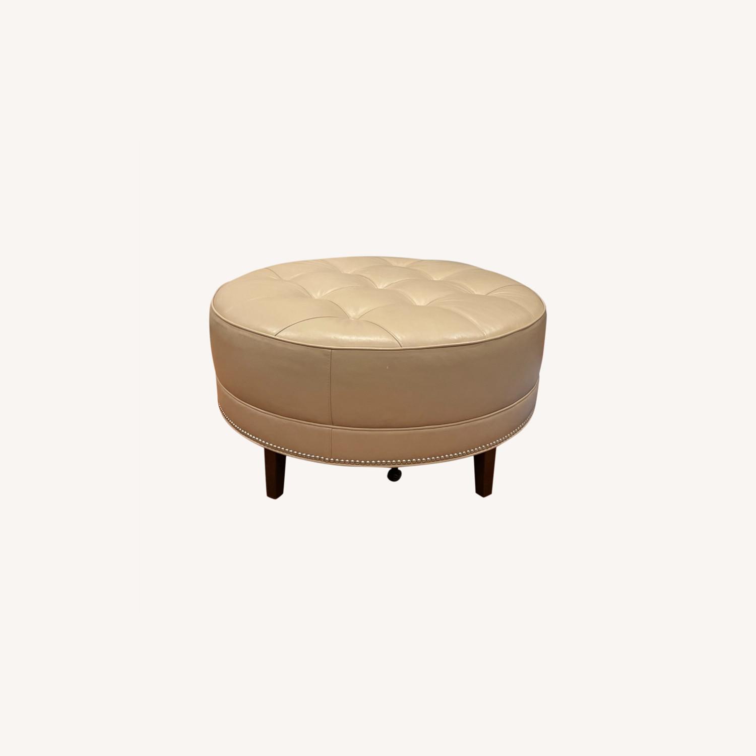 Ethan Allen Round Leather Ottoman