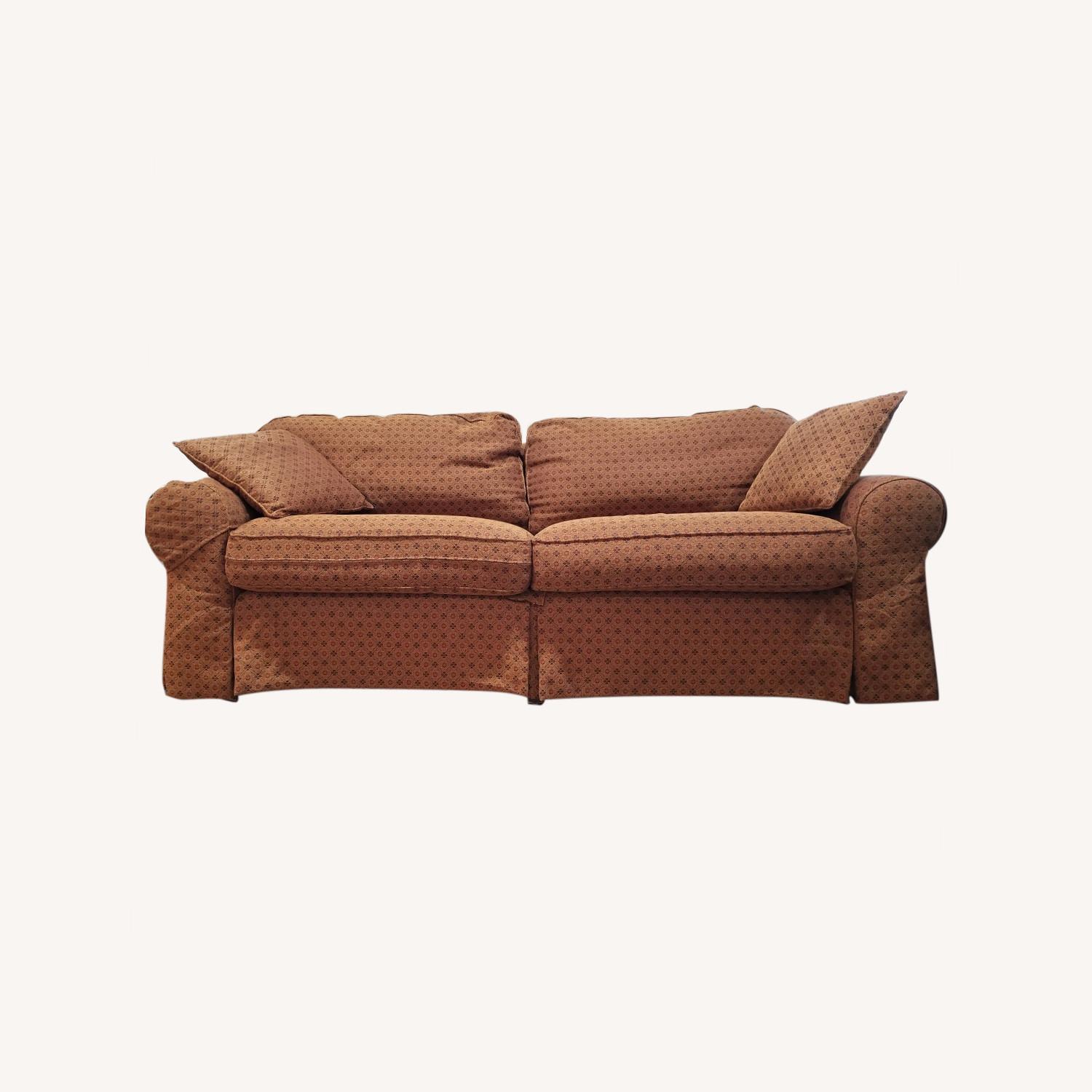 Seller's Notes:Barely used sofa, and it shows it. Was in a plastic wrap in a temperature controlled storage room for most of its life. Moved as soon as we bought the furniture and didnt unpack until two years ago. Very comfortable couch. Unfortunately, we are remodeling downstairs, and it's too big to move it upstairs. So sad to see it go. No pets. Non-smoker. No stains. No rips. Paid well over $3000 when new. Custom fabric.