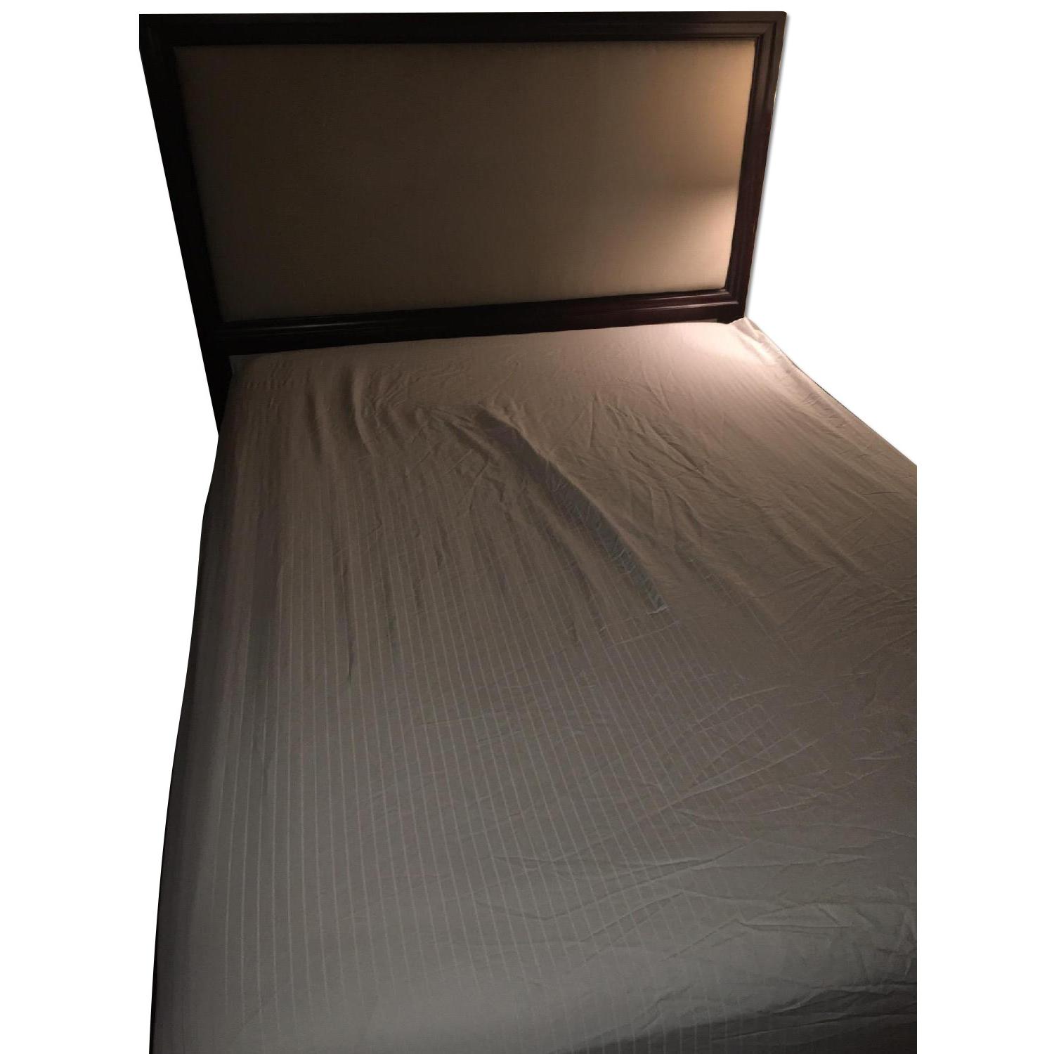 Ethan Allen Solid Wood Bed Frame with Beige Headboard