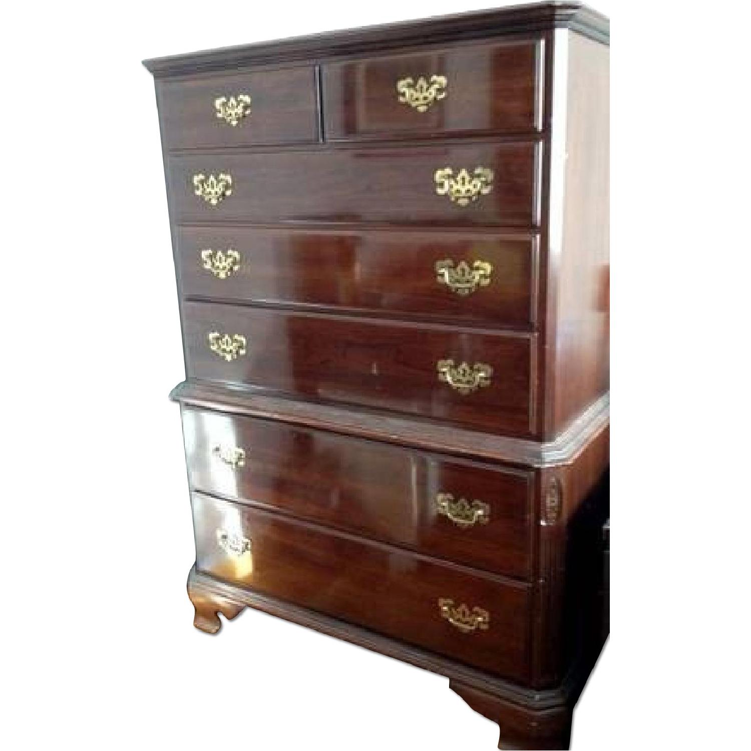 Seller's Notes:Bought in the mid-1980's, this Ethan Allen dresser has a real cherry wood finish with brass handles and spacious drawers. There are minor nicks here & there while some handles may need tightening, but nothing major. The dresser is situated on wheels for easy moving, but 1 wheel has gone missing over the years. If I were buying it, I'd just remove the other 3, but you may choose to find a replacement wheel. Without the drawers, it's pretty manageable to carry, just awkward - definitely a 2-man job. Message me for dimensions.