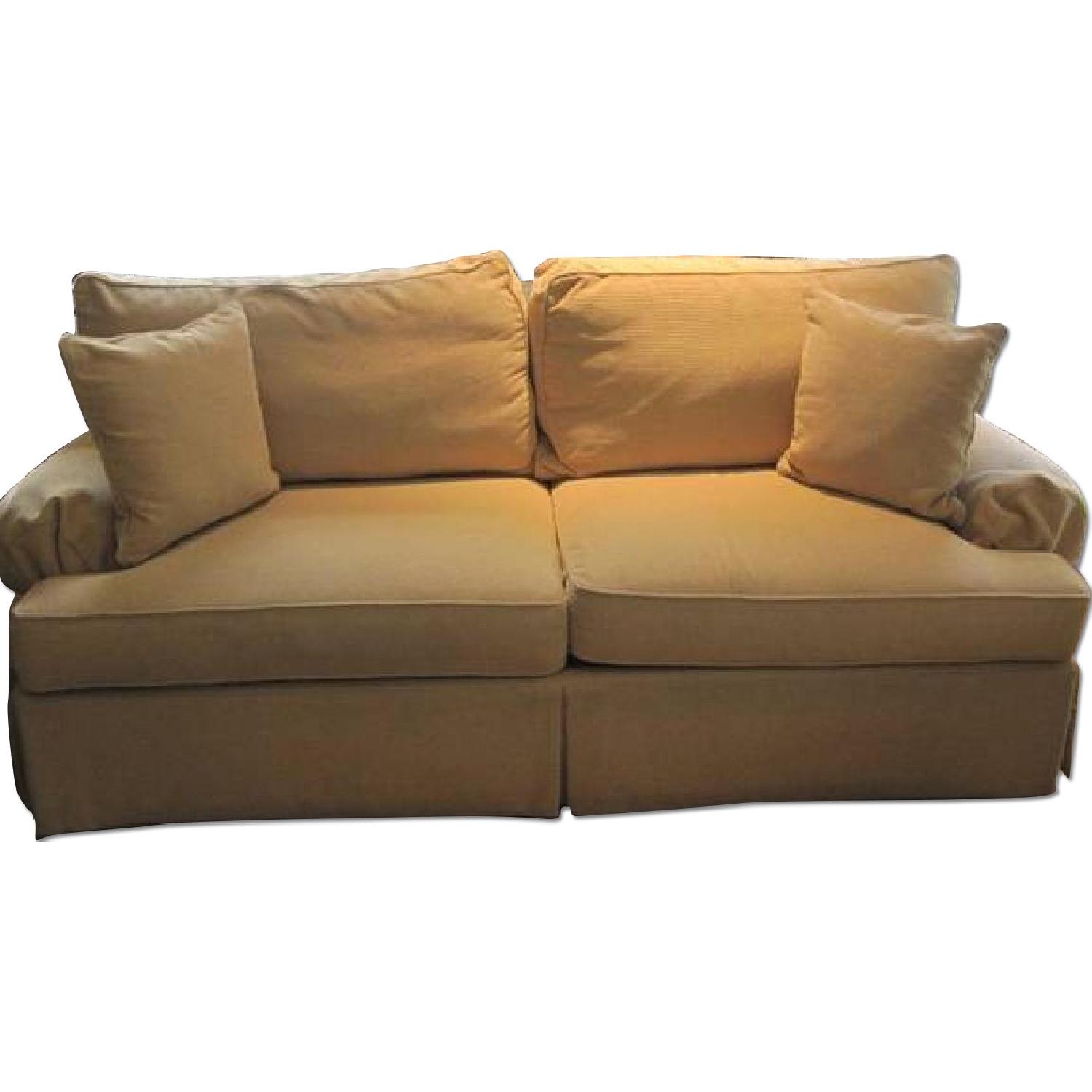 Seller's Notes:This AMAZING Ethan Allen Two- Cushioned Couch is for sale. Great Condition!! Color is neutral with a texture feel. Its 2 cushioned back with 2 throw pillows. Purchased in Ethan Allen in Garden City.