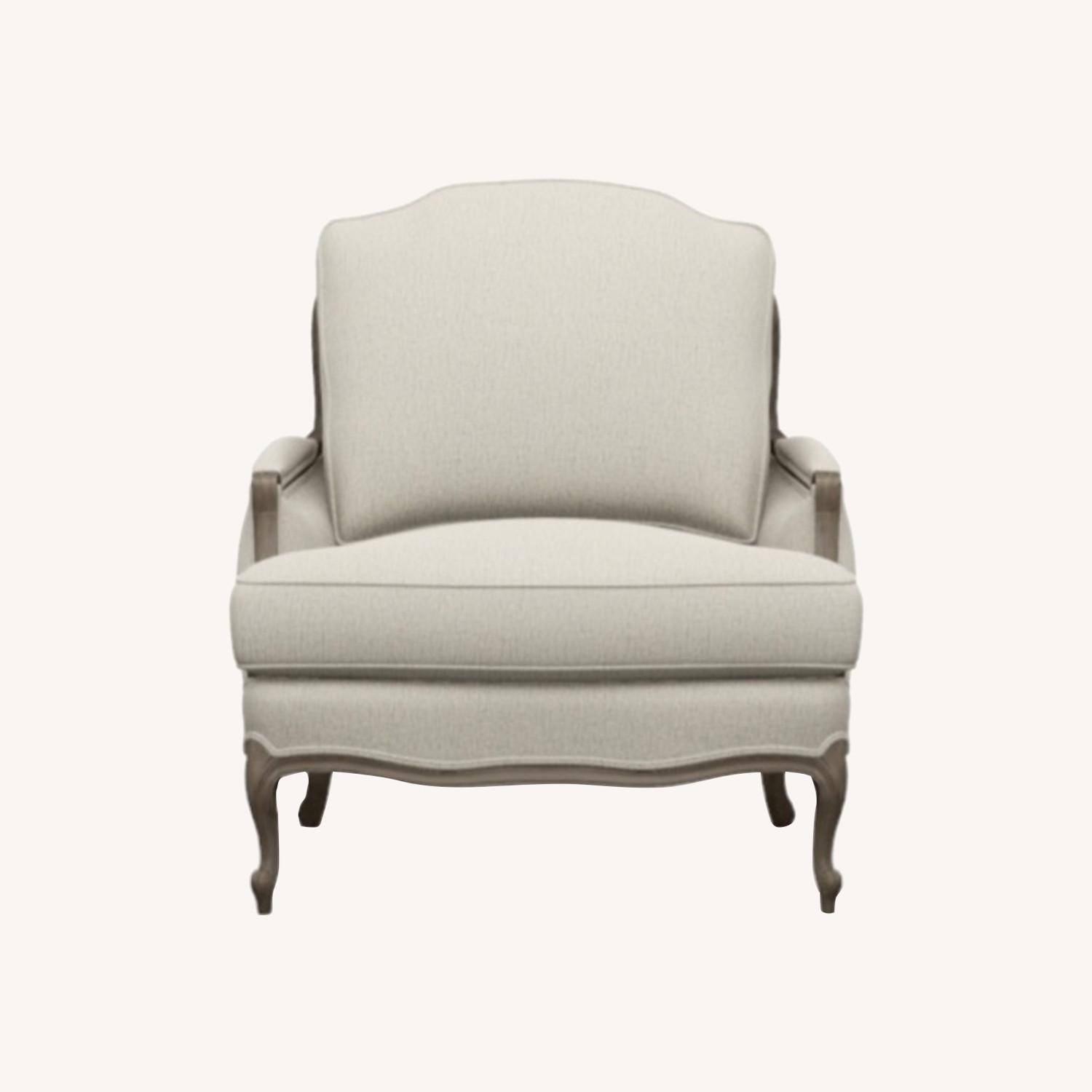 Seller's Notes:We are selling our beloved Ethan Allen chair. We had it reupholstered 2 years ago and the chair is in really amazing condition. The wood on the chair is a beautiful white washed / aged style.