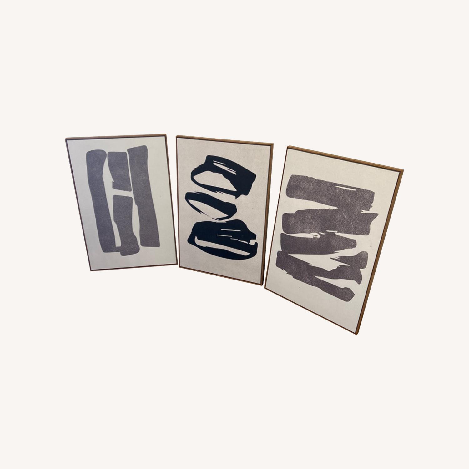 Seller's Notes:Great condition No place for tnem in new home Wooden frames 2 prints are a faded black grey ish and the middle is black - how it came