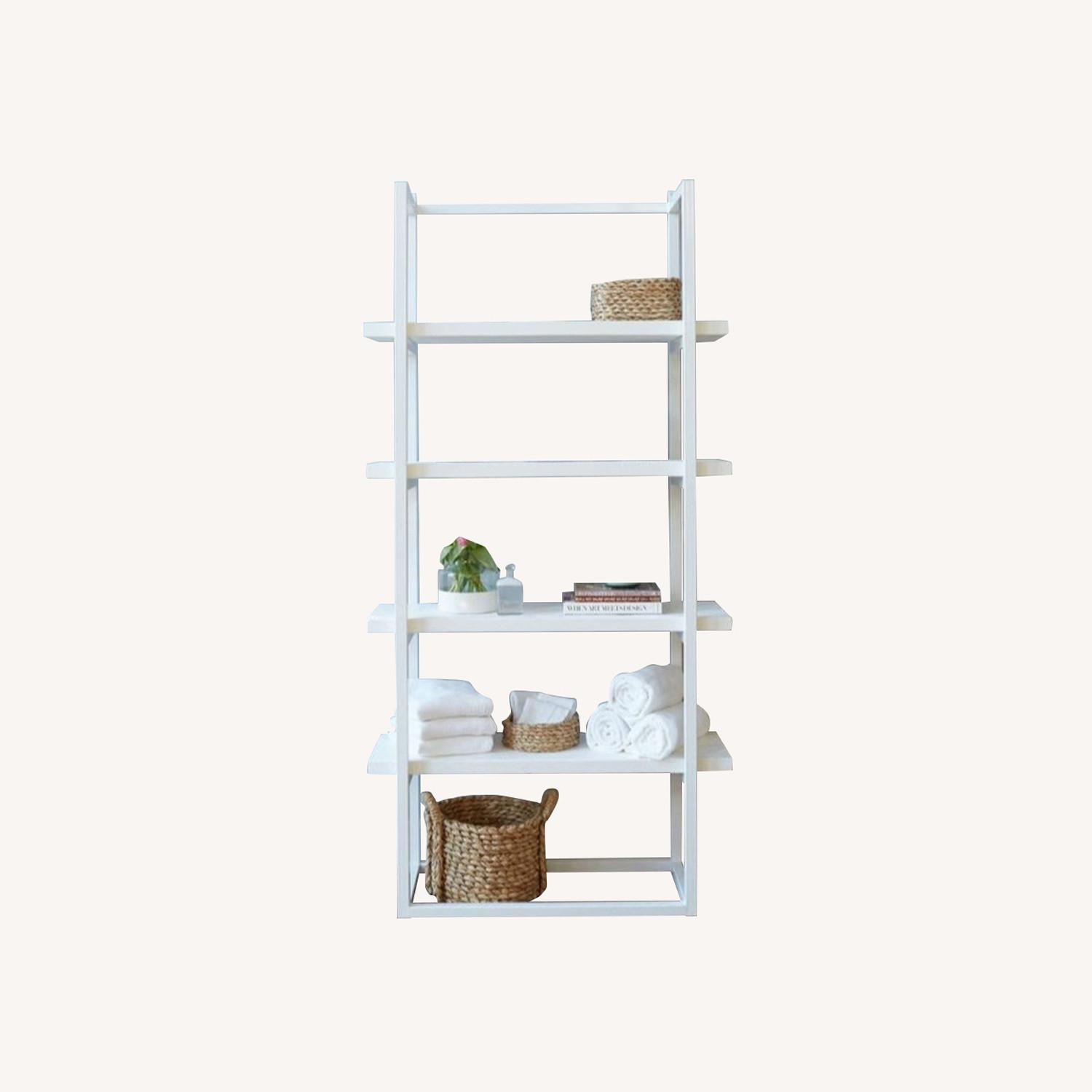 Seller's Notes:This shelf retails for $2395 each (by the time you pay tax and shipping they'd be almost $3000 a piece, so this is quite the steal). Shelves are solid wood with an opaque white finish, the frame is powder coated metal. Used in a retail setting and in great condition with no damages or defects. The metal frame/base has very light wear. Please note this unit is extremely heavy and a very sturdy, quality piece of furniture. 96" tall x 48" wide x 18" deep