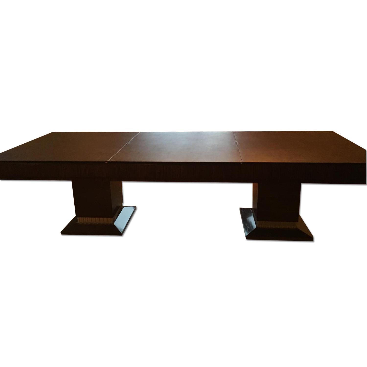 Seller's Notes:MOVING MUST SELL Happy to take best offer please contact me with questions by clicking "Contact Seller" below the images. This gorgeous art deco table, made of zebra wood and imported from Valencia, Spain has hidden extensions that are in drawers at either end. Seats 12 - 20 people. Custom table boards included. Table is 118" long, and each extension is 24 " - total 166" 12 chairs available under separate listing (Donghia dining chairs)