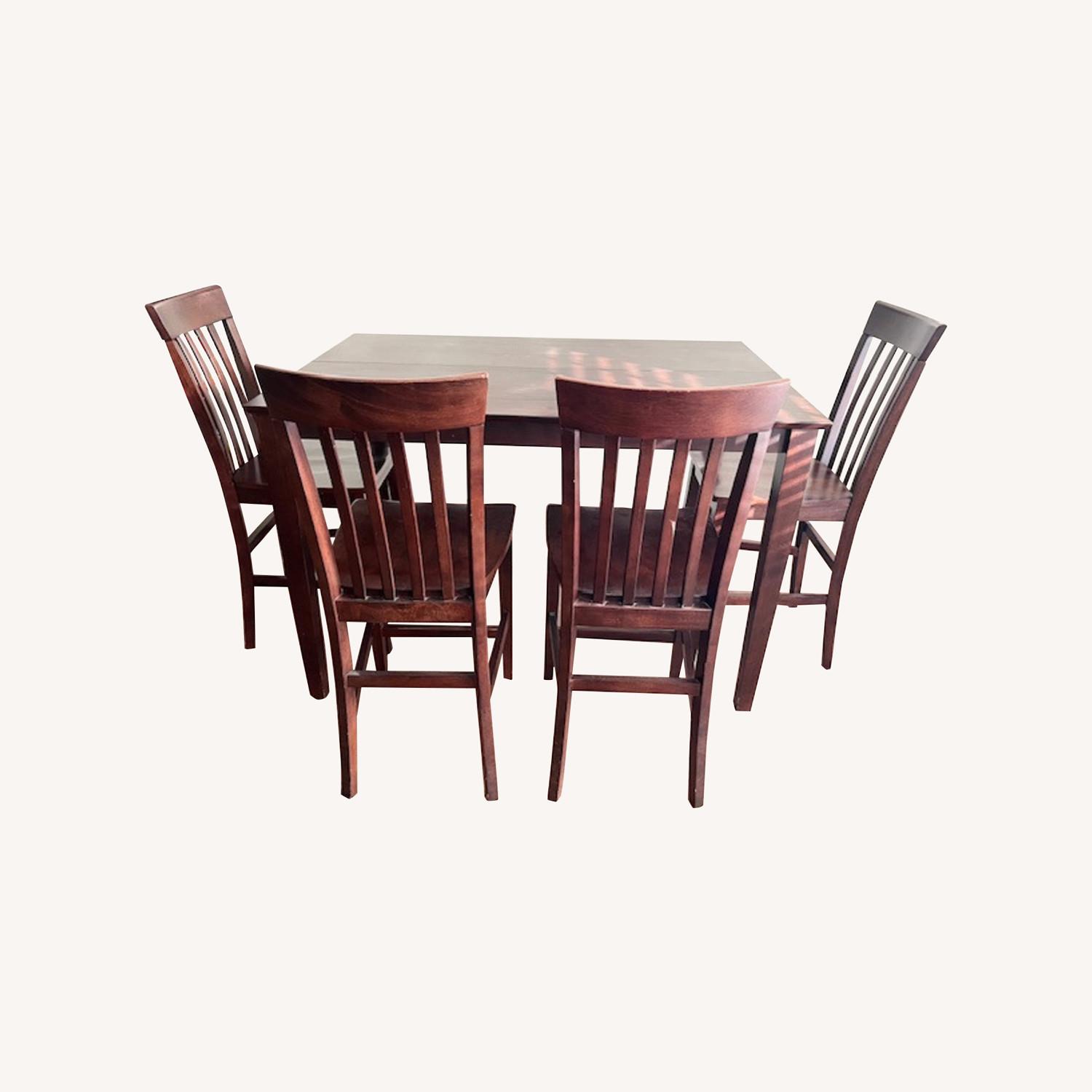 Seller's Notes:Cherry extendable rectangular counter height dining room set. The dining table extends to accomodate two additional seats/chairs. This is a Roomstore furniture product -part of the Cherry Blossom dining collection. It is in new condition. The dining set comes with 4 counter height chairs and a bench. Items can be purchased separately as well. Dining set - $750 Chairs - $300 Dining table - $400 Bench - $50 Needs to sell ASAP!!