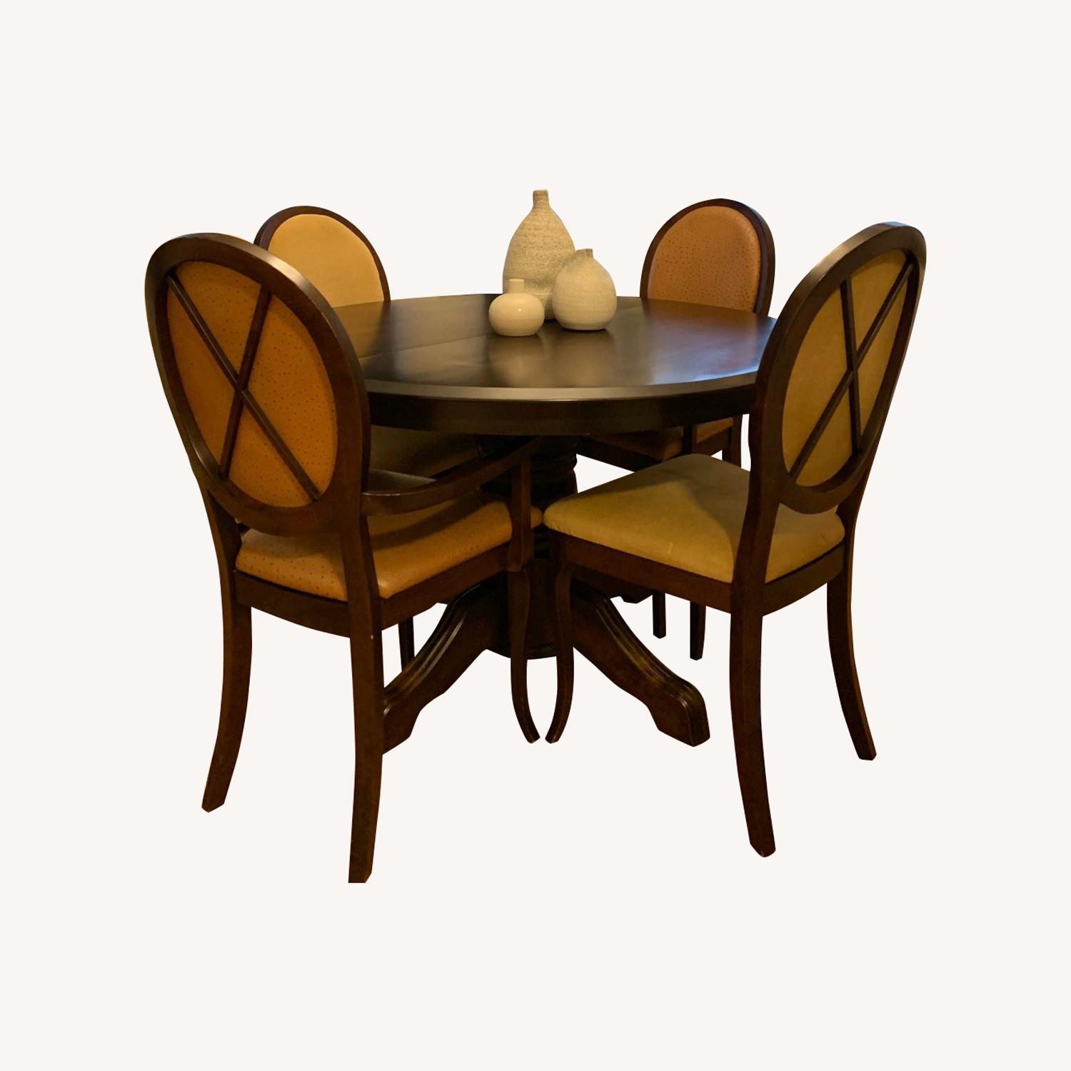 Seller's Notes:Pedestal table is 30" high, 48" round or expands to 68". There four chairs as well. All sold separately