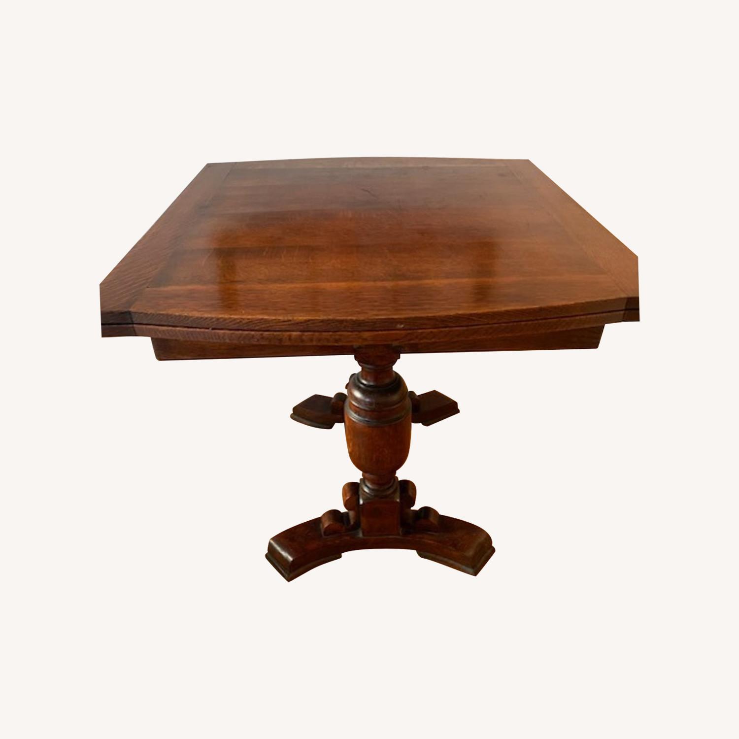 Seller's Notes:I bought this table at an antique store in the West Village in the late 1970's. It expands from a length of 39" to 62". It's solid wood with a beautiful patina and wood grain. It's great as a dinner table for 6, or smaller as a game table. The workmanship is wonderful -- the legs on the base are beautifully turned. And, the table expansions slips under the table top.