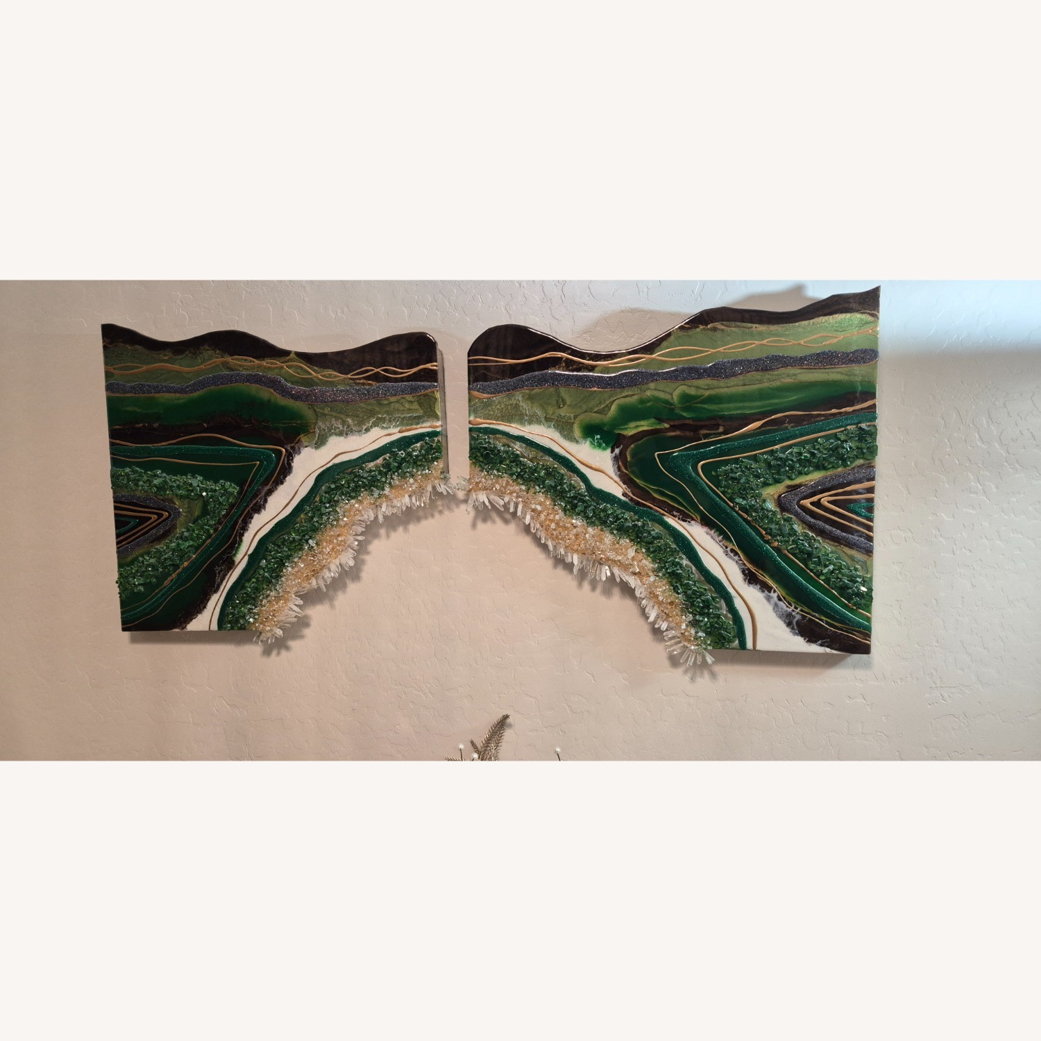 Seller's Notes:A beautiful resin art peice to hang on your wall! Each quartz crystal is REAL and was hand-glued with resin one-by-one. Meant to reflect off of the vibrant colors of nature and the Earth, this piece is perfect for nature lovers!